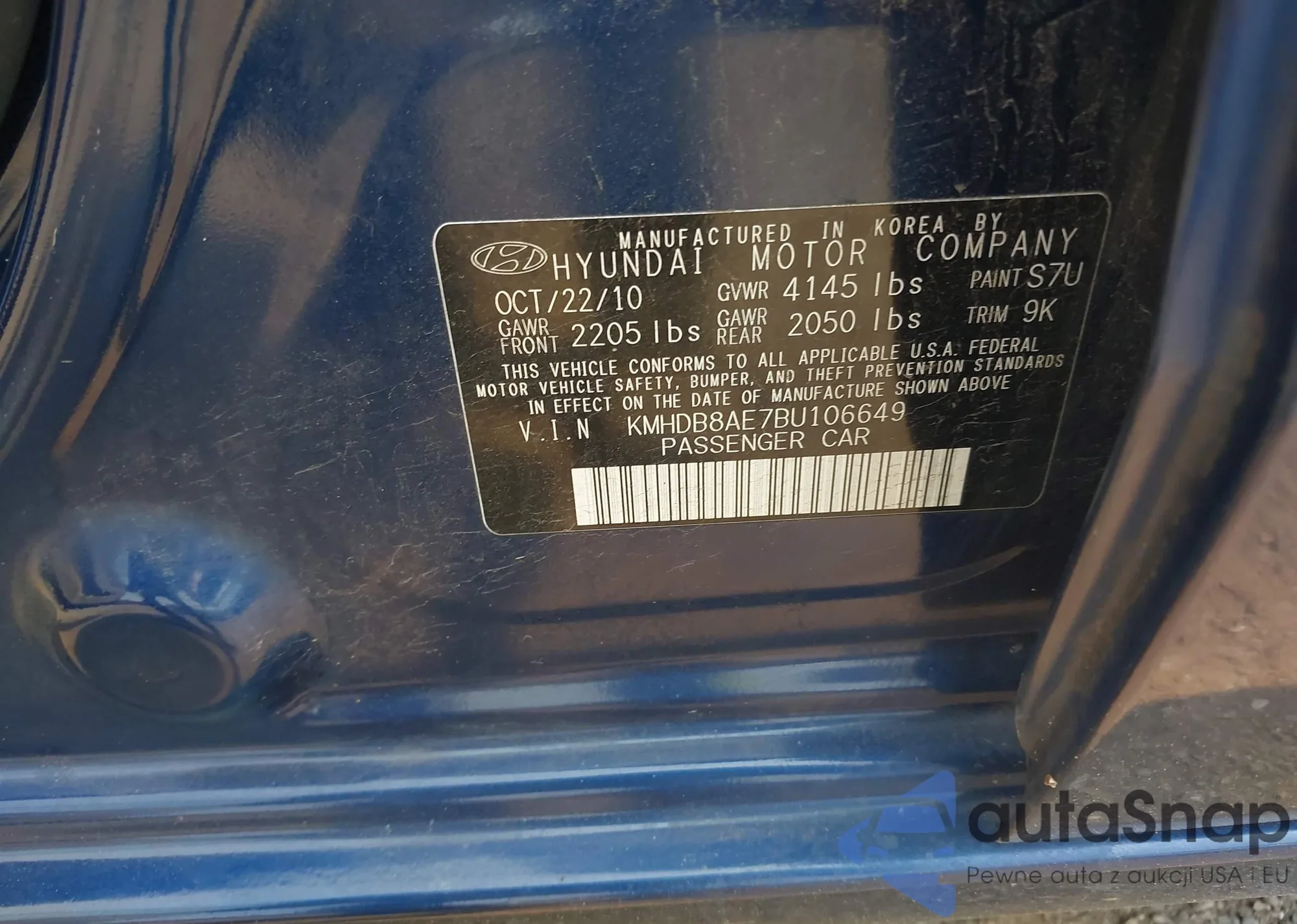 VIN: KMHDB8AE7BU106649
