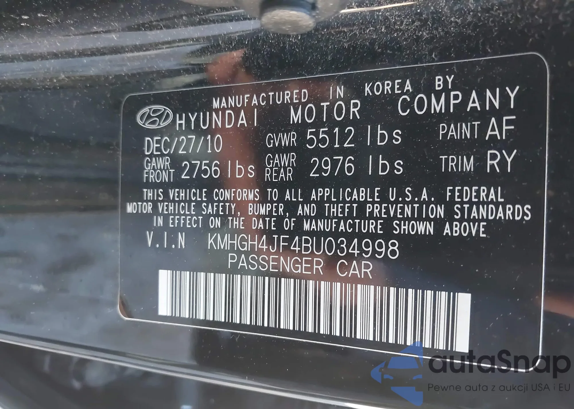 VIN: KMHGH4JF4BU034998