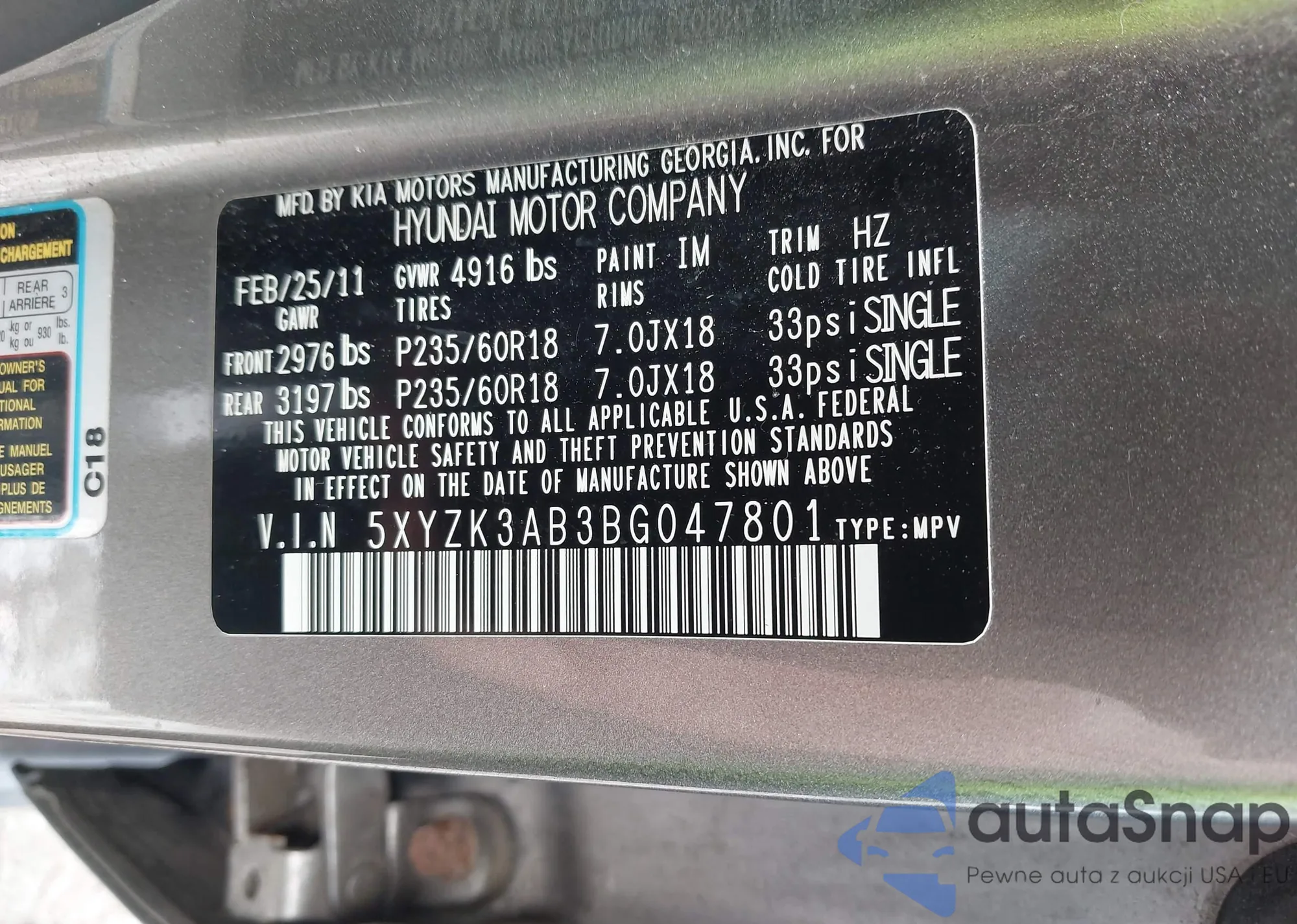 VIN: 5XYZK3AB3BG047801