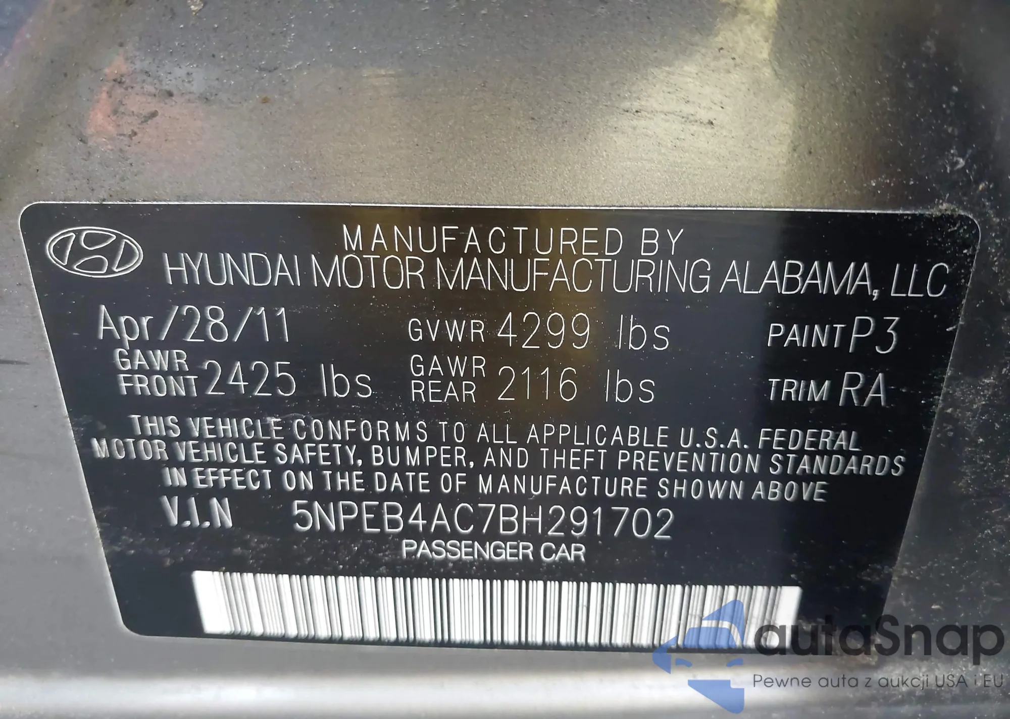 VIN: 5NPEB4AC7BH291702