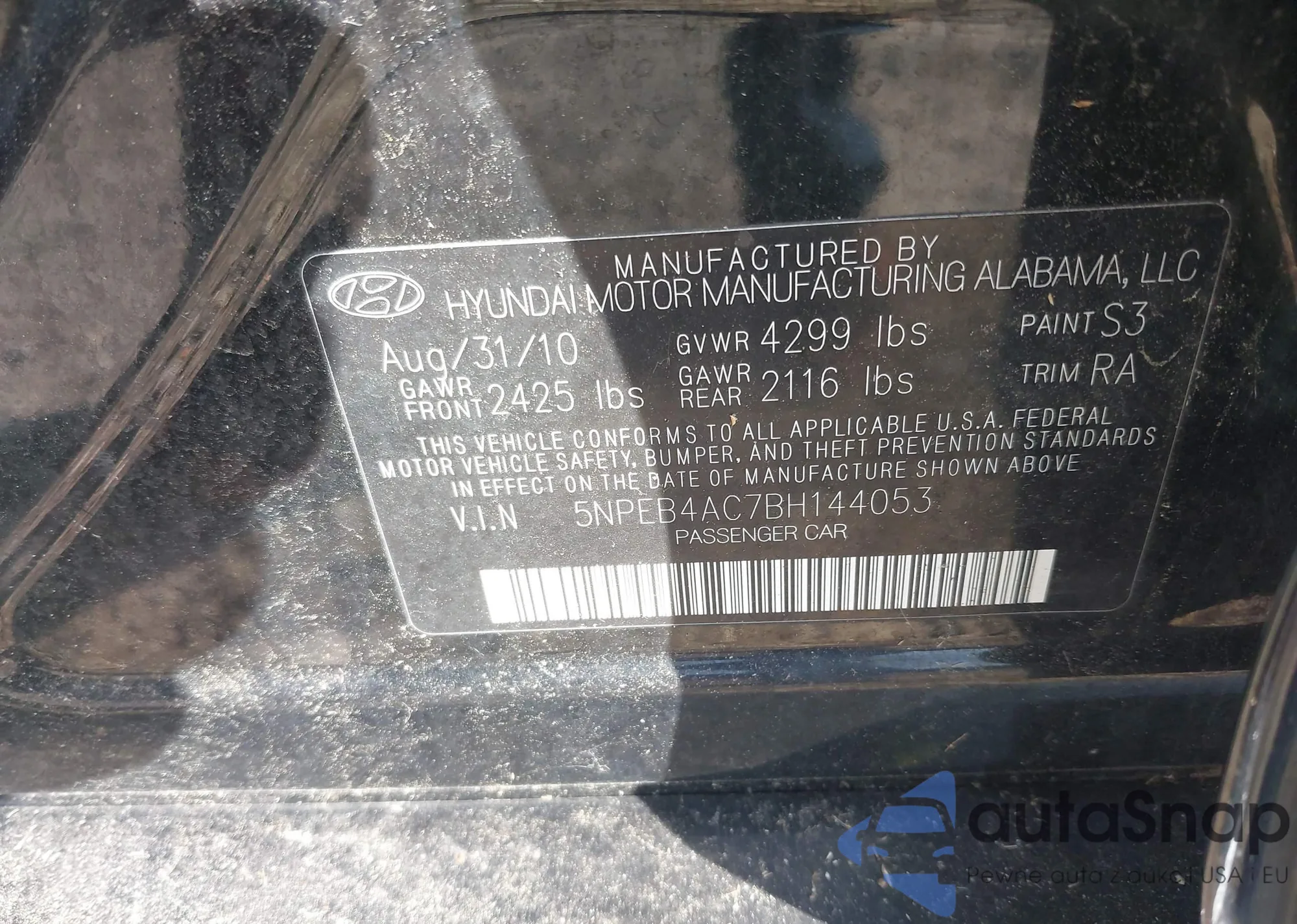 VIN: 5NPEB4AC7BH144053