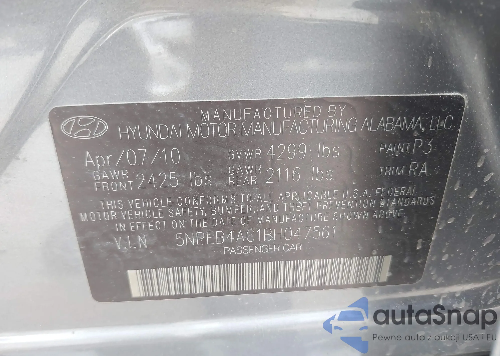 VIN: 5NPEB4AC1BH047561