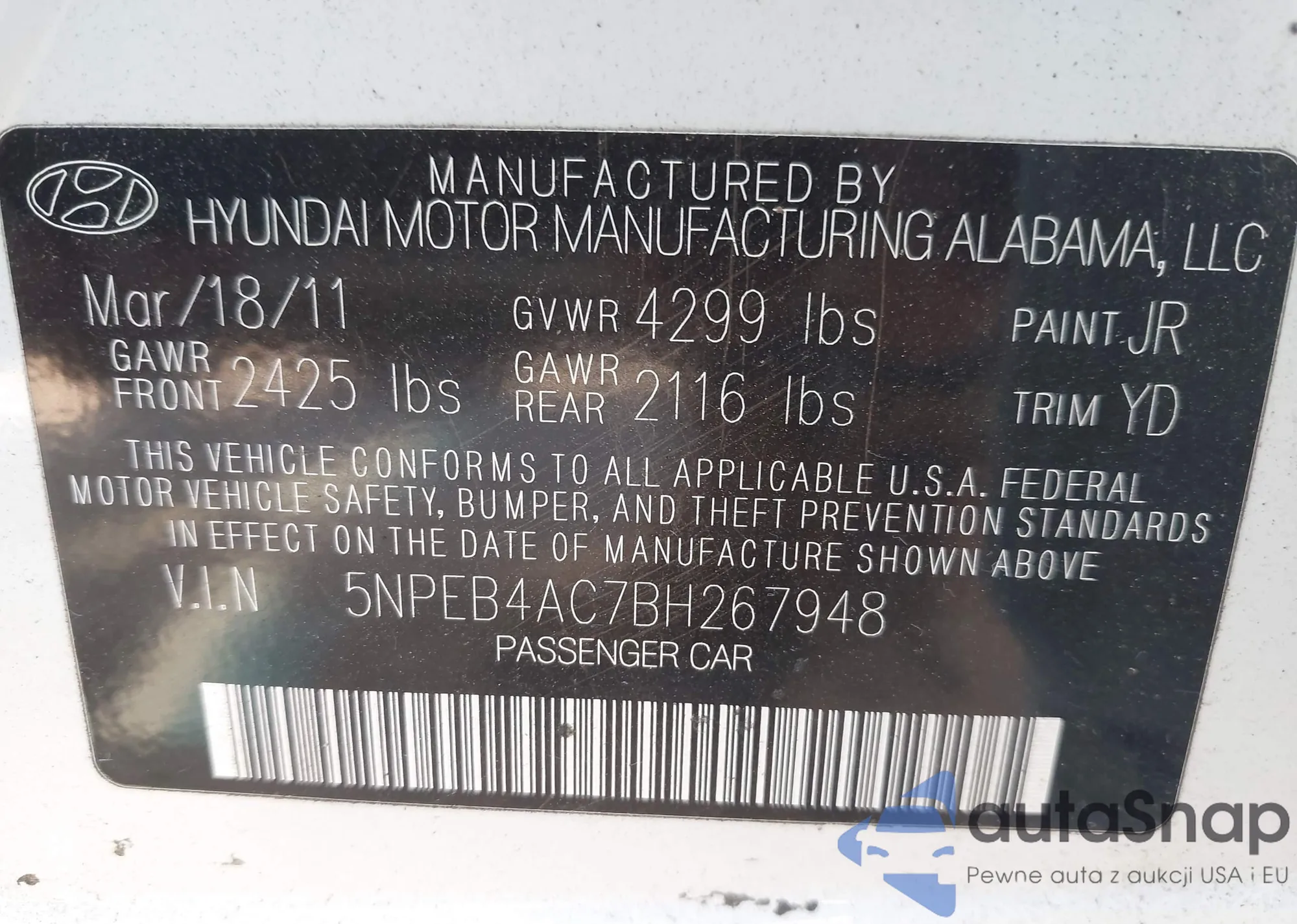 VIN: 5NPEB4AC7BH267948