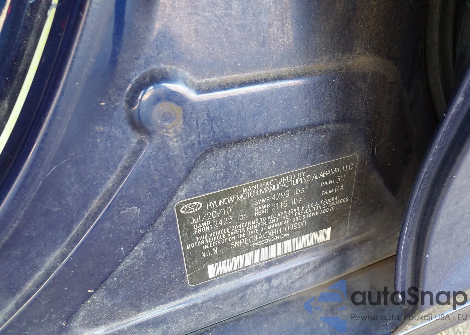 Hyundai Sonata 2011 – История автомобиля (продан на IAAI)