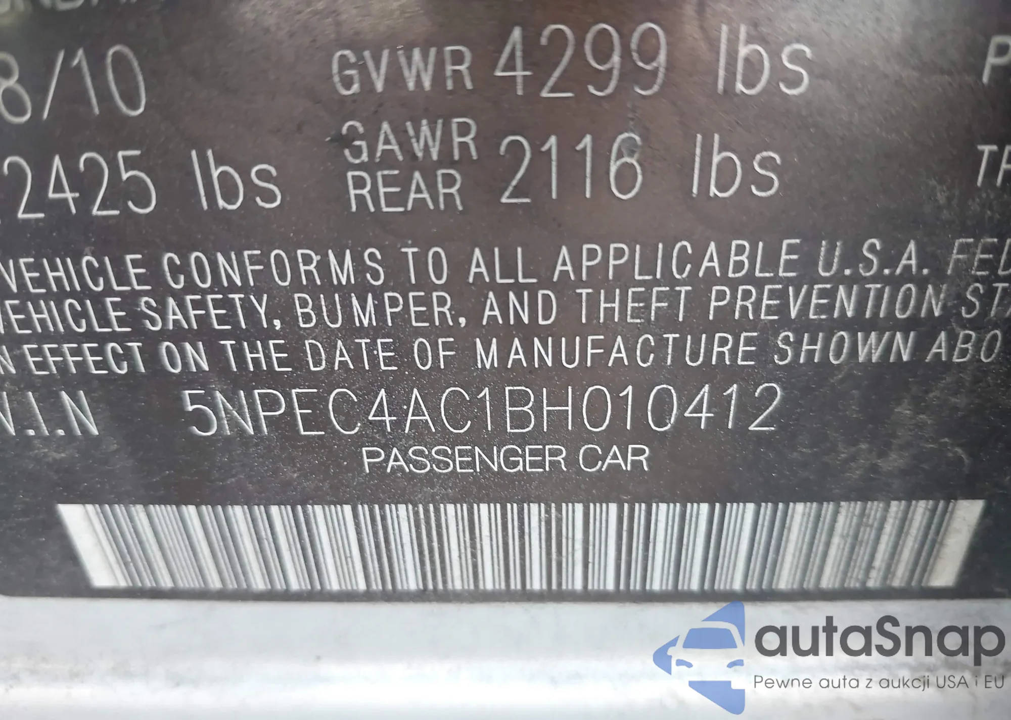 VIN: 5NPEC4AC1BH010412