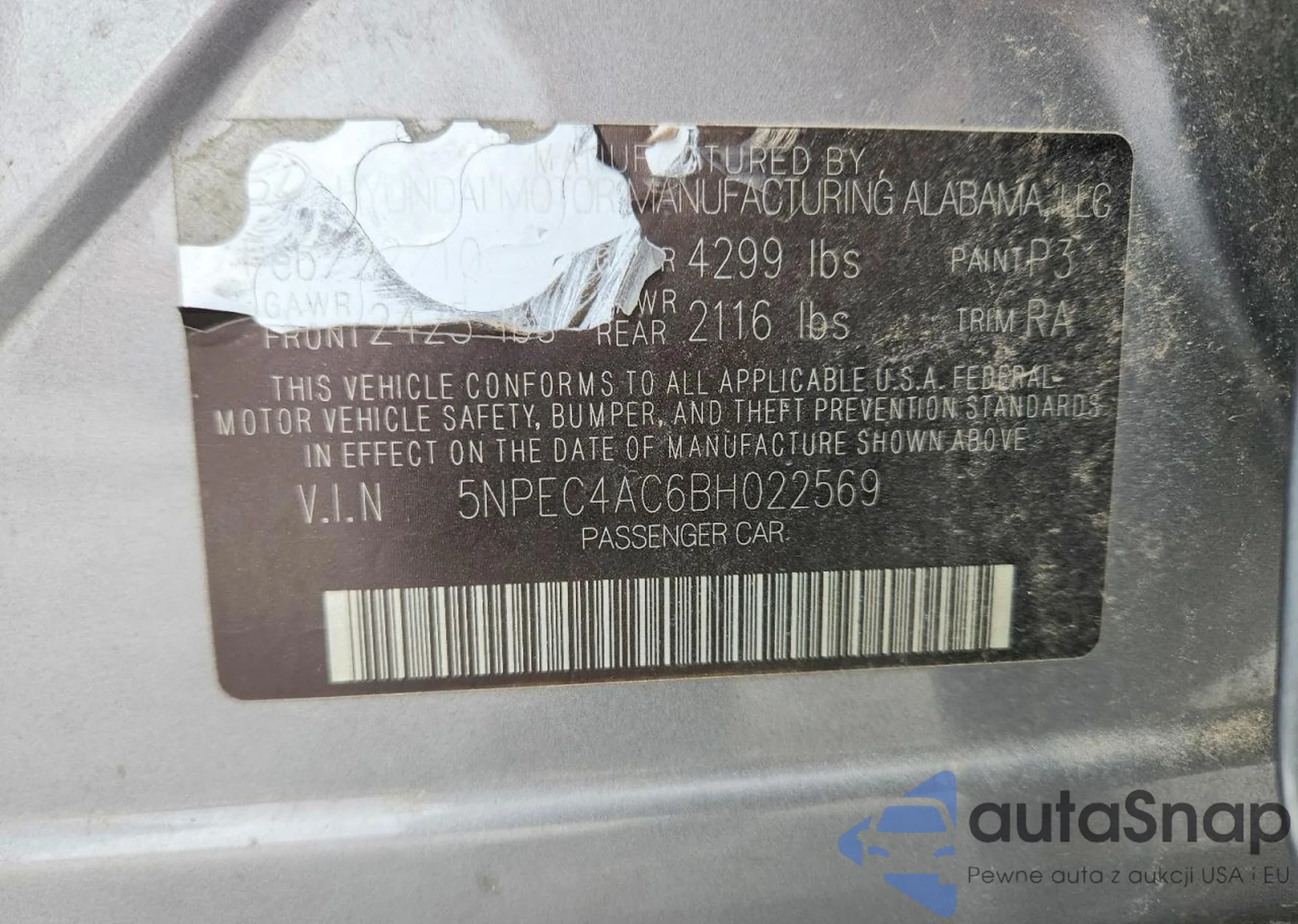 VIN: 5NPEC4AC6BH022569