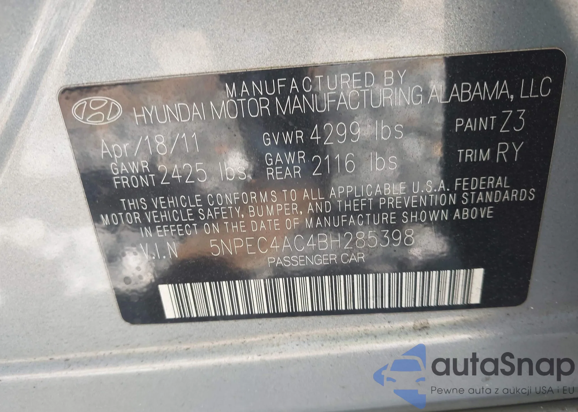 VIN: 5NPEC4AC4BH285398
