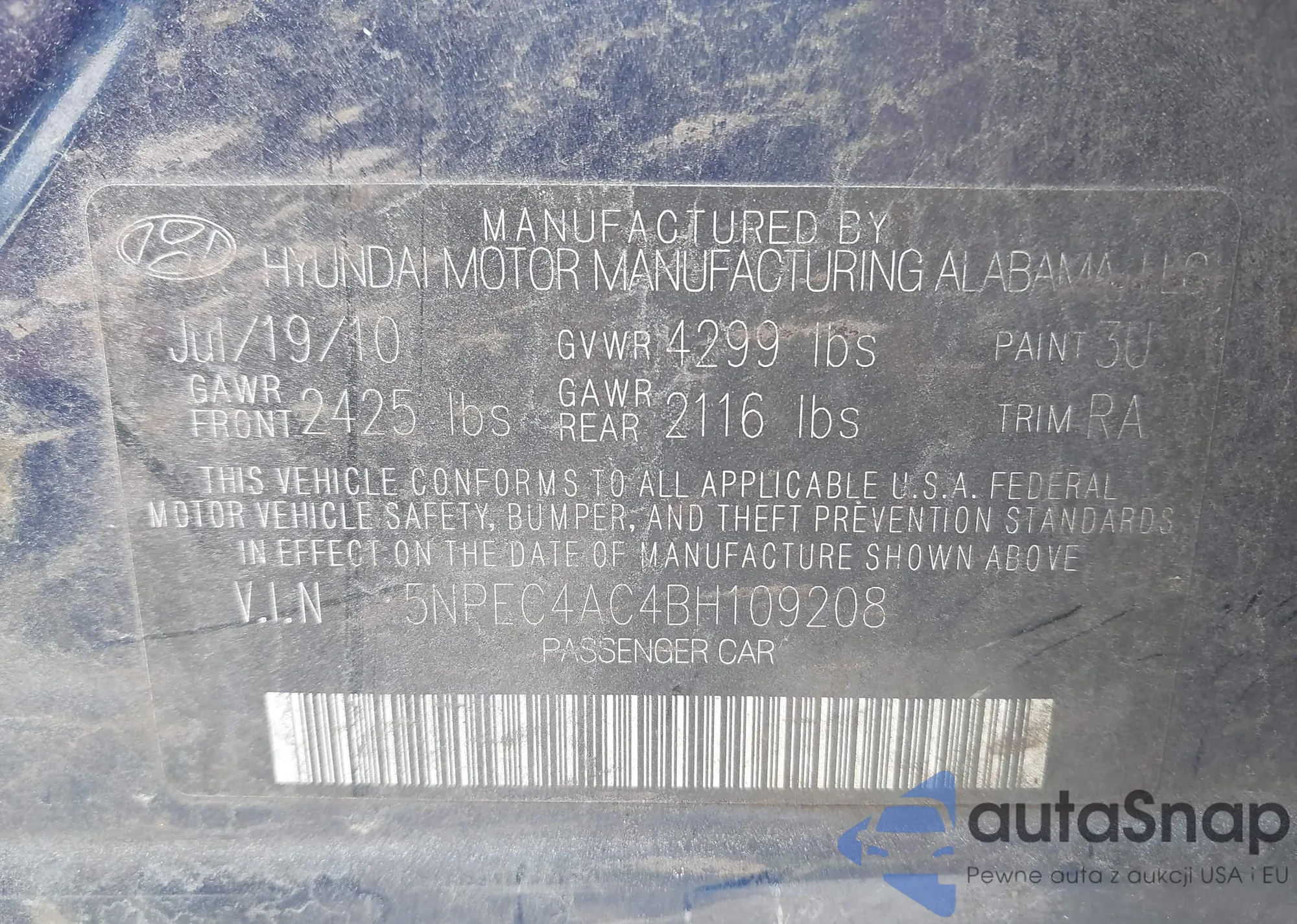 VIN: 5NPEC4AC4BH109208
