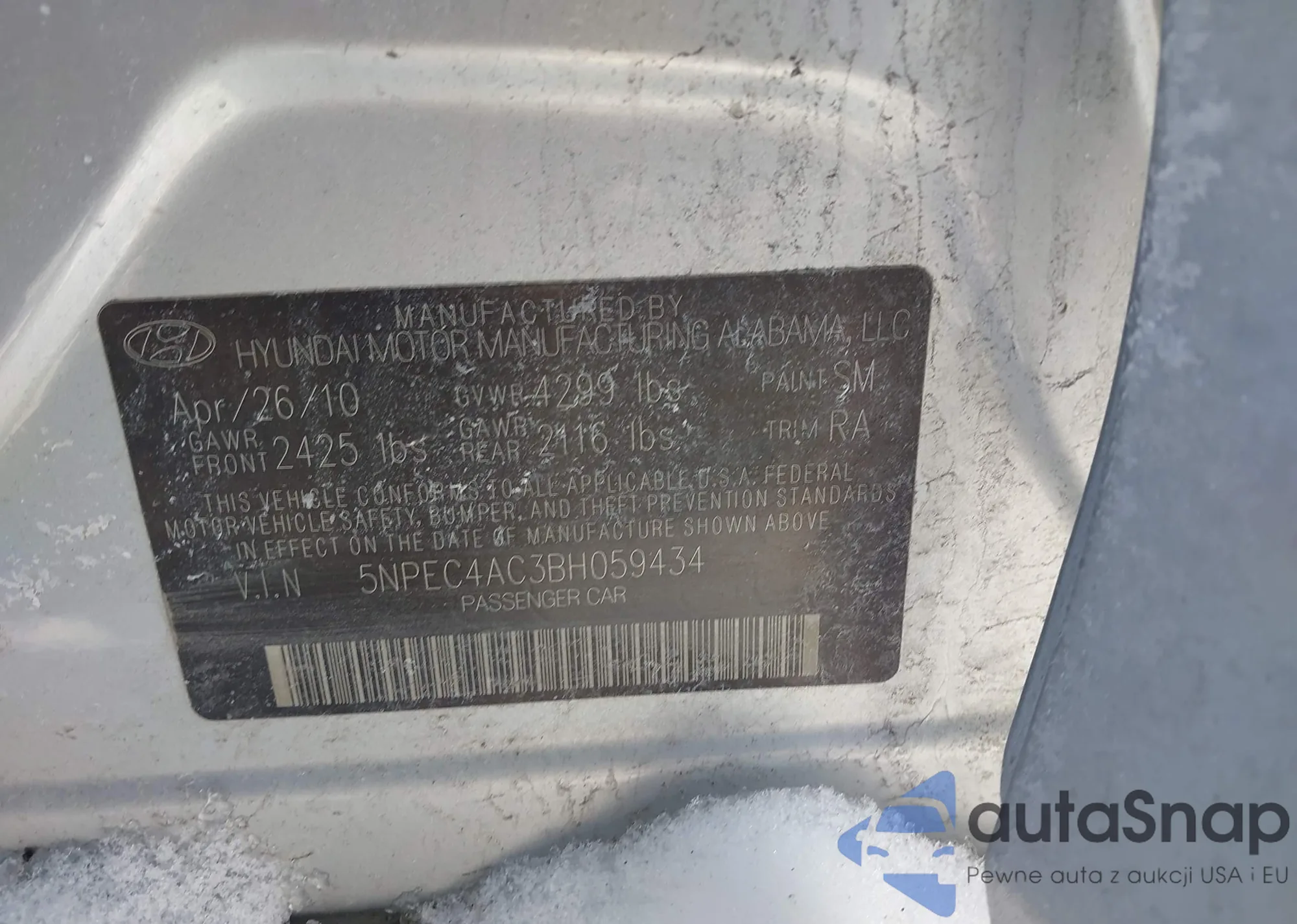 VIN: 5NPEC4AC3BH059434
