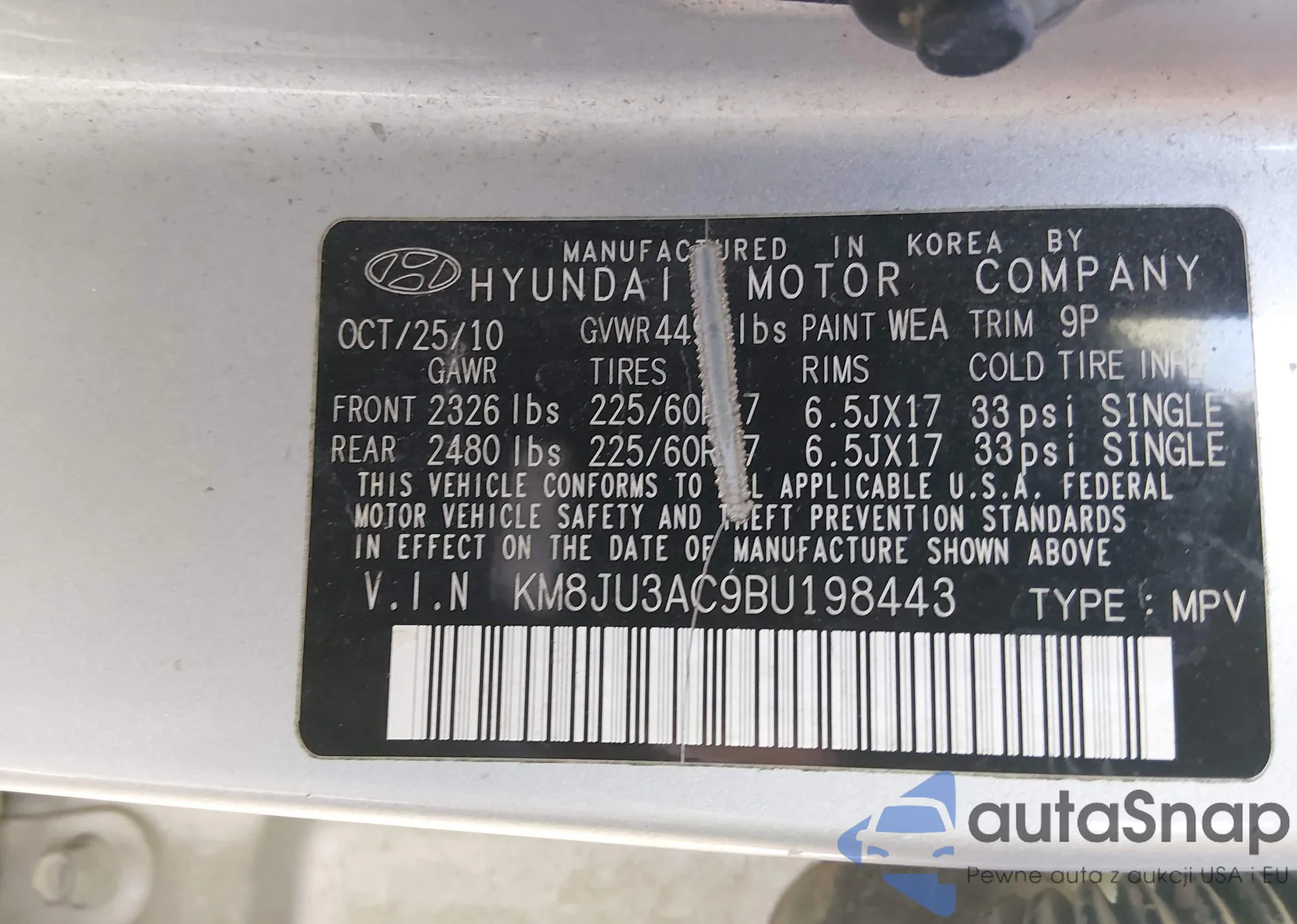 VIN: KM8JU3AC9BU198443