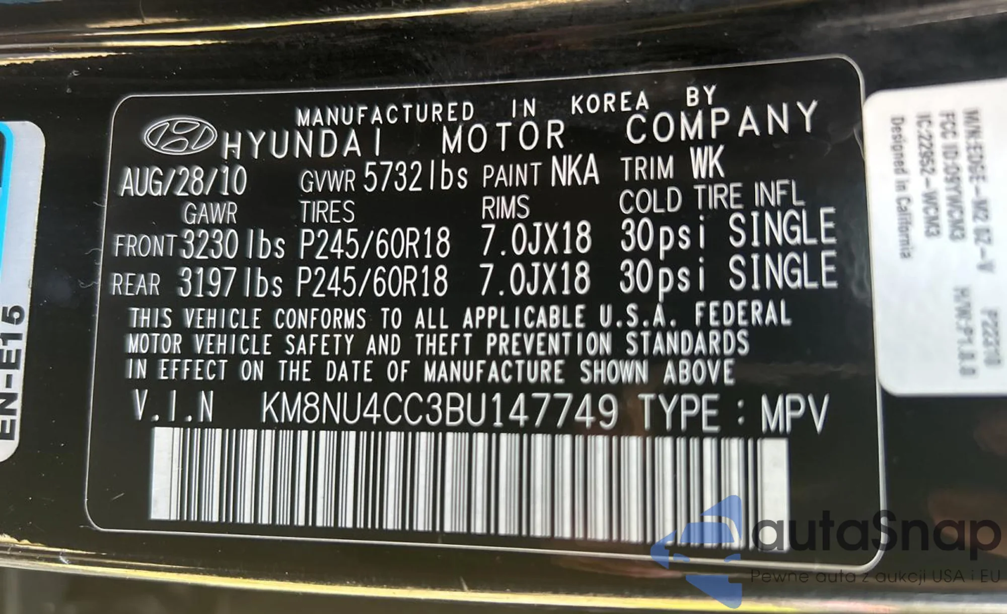 VIN: KM8NU4CC3BU147749