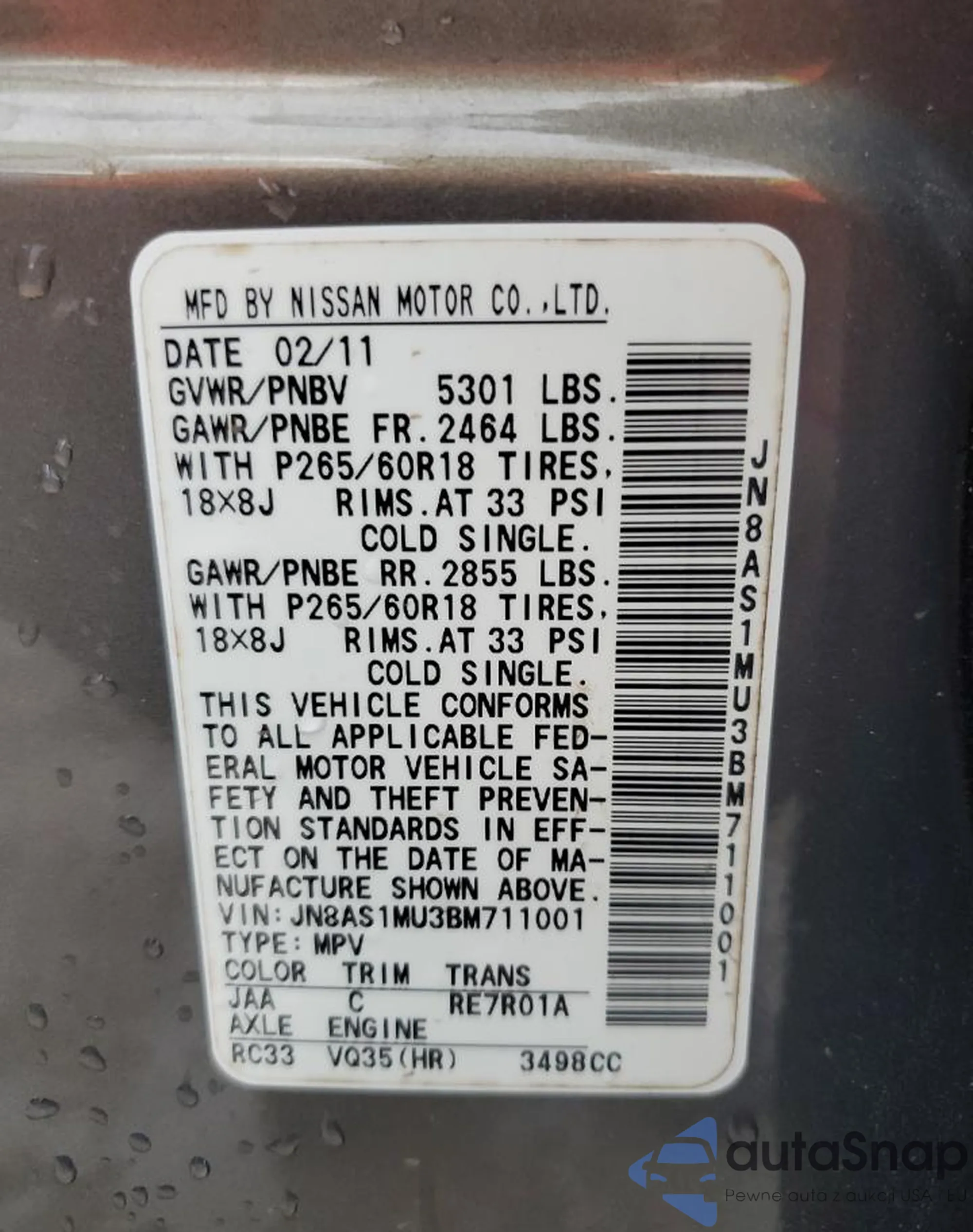 VIN: JN8AS1MU3BM711001