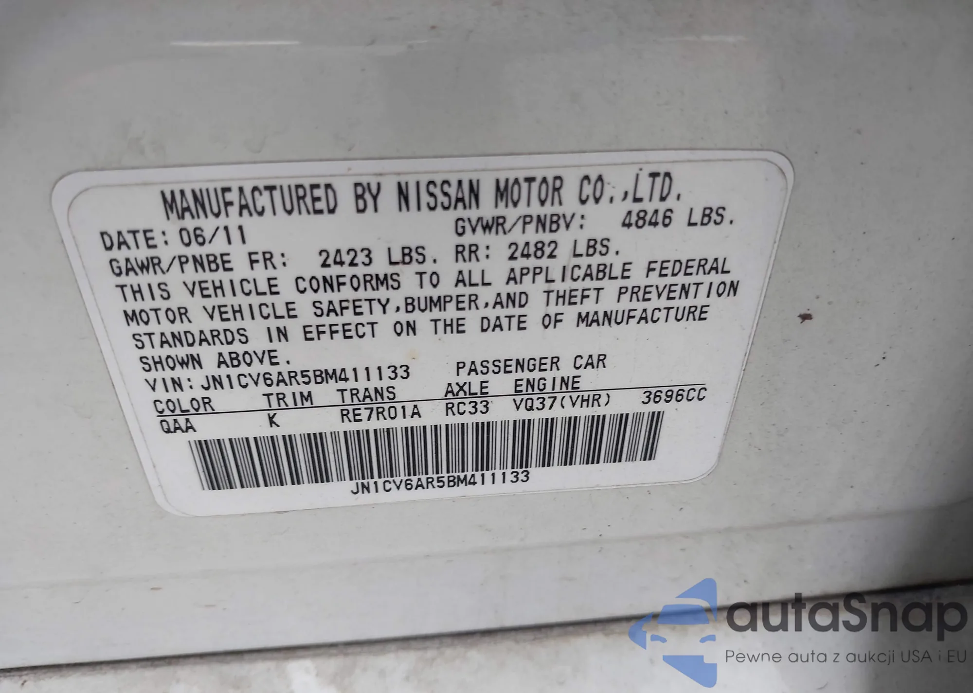 VIN: JN1CV6AR5BM411133