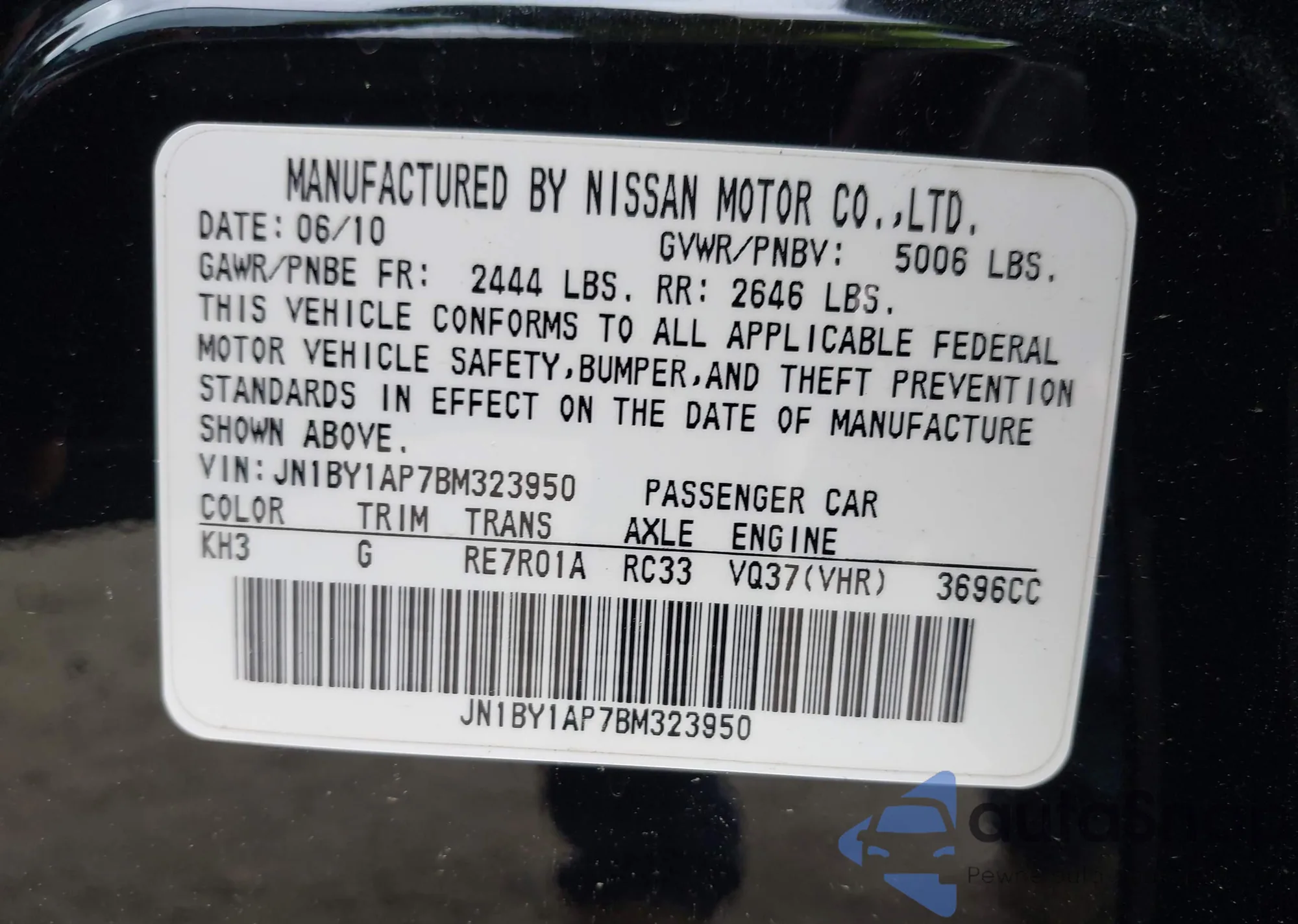 Автомобиль Infiniti M 2011 (VIN JN1BY1AP7BM323950) имеет документы, препятствующие регистрации. Могут возникнуть сложности при экспорте и регистрации. Обратитесь к экспертам AutaSnap для поиска альтернатив.