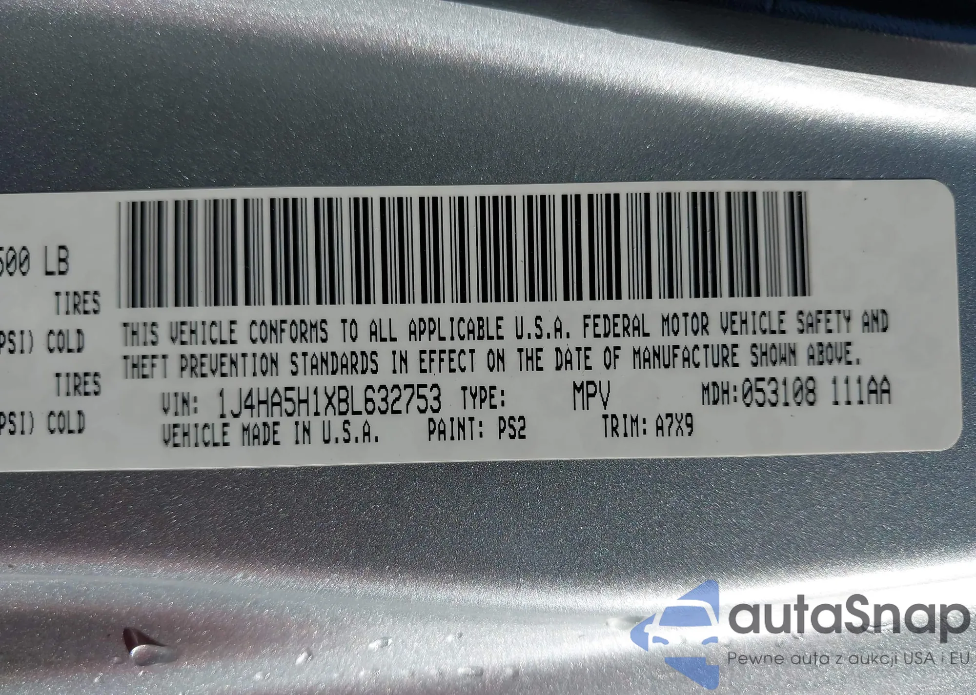 VIN: 1J4HA5H1XBL632753