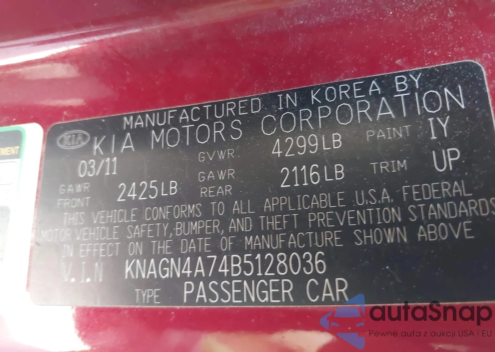 VIN: KNAGN4A74B5128036