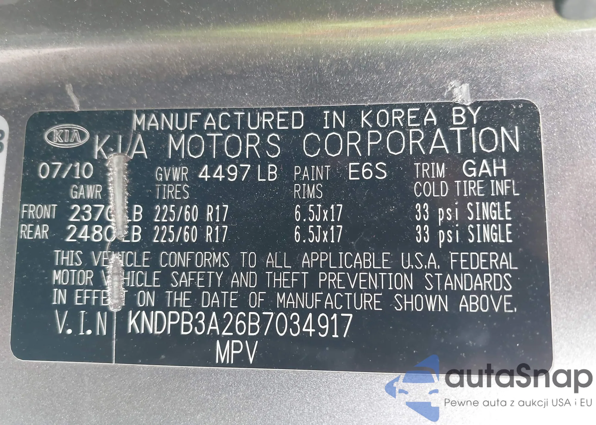 VIN: KNDPB3A26B7034917