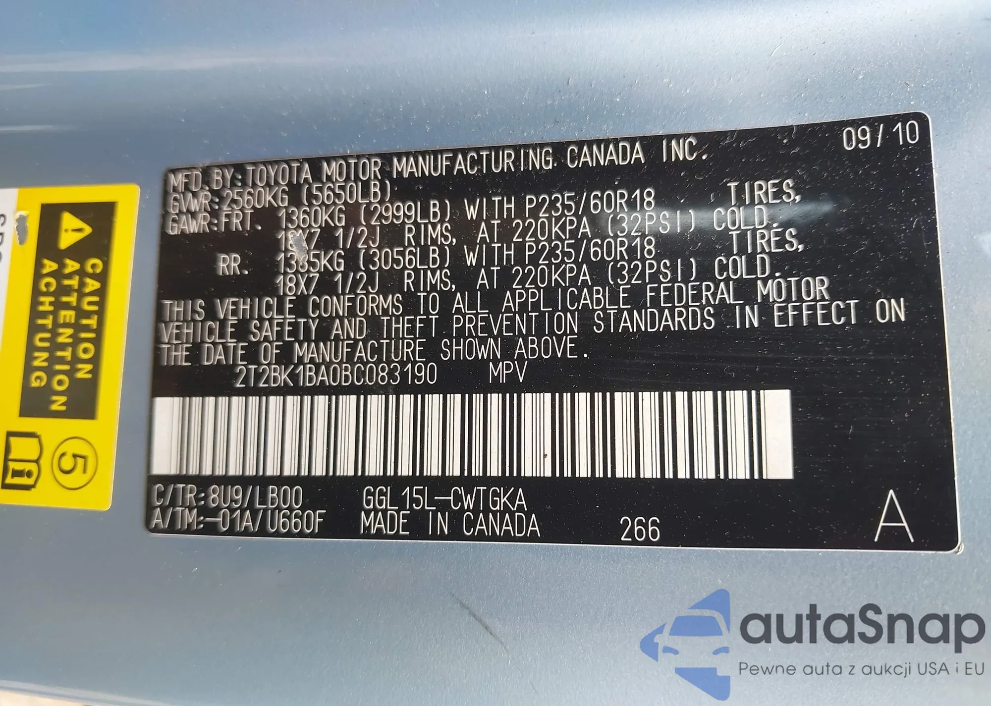 VIN: 2T2BK1BA0BC083190