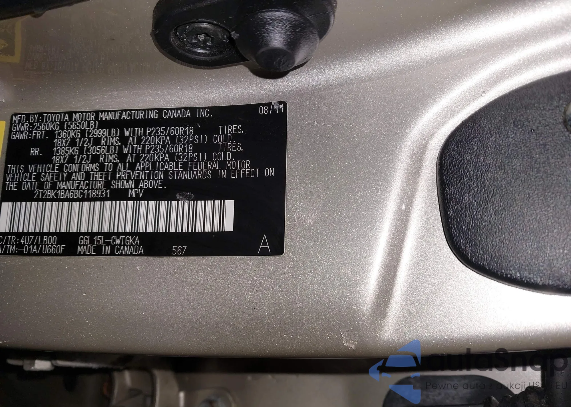 VIN: 2T2BK1BA6BC118931