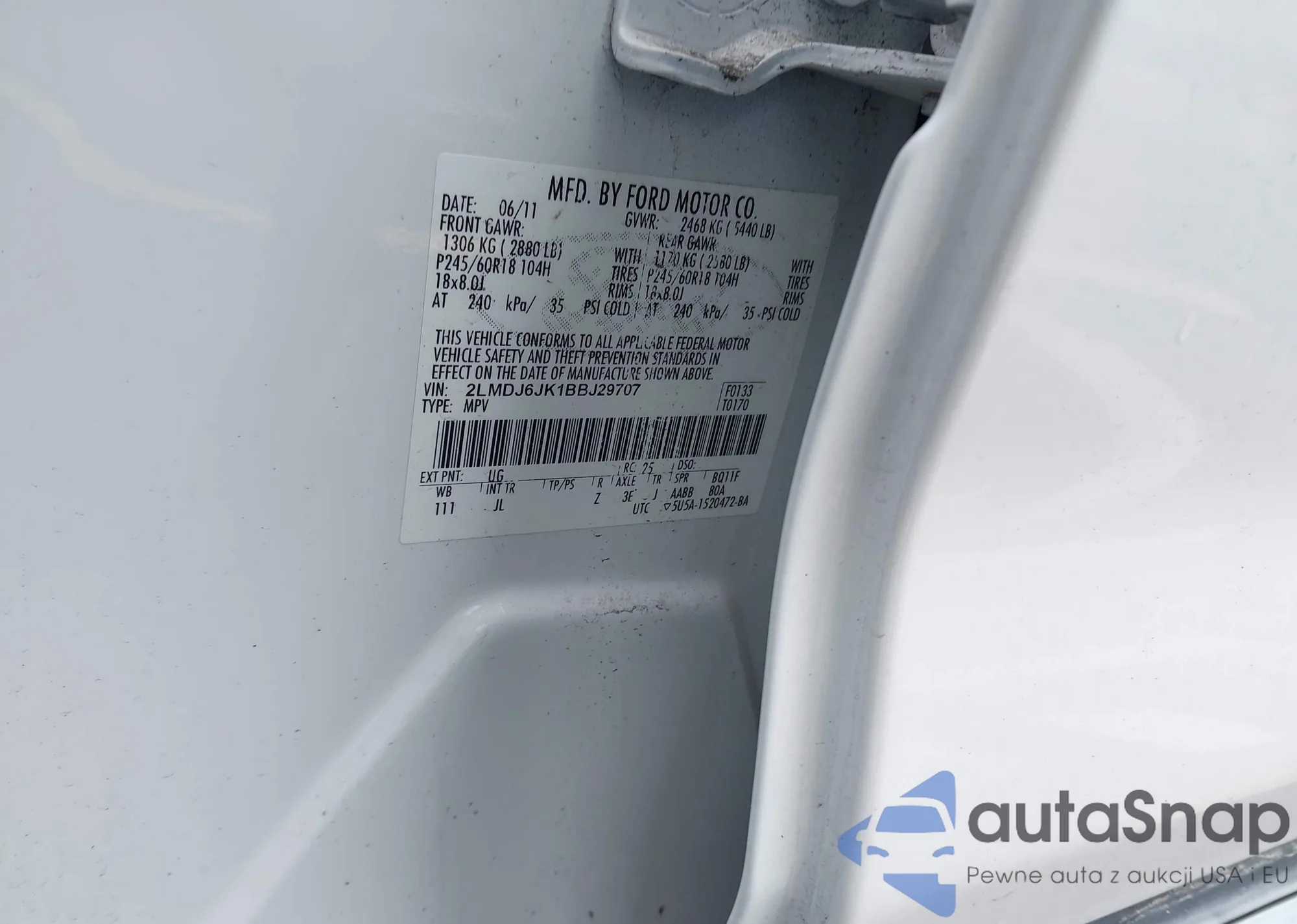 Автомобиль Lincoln MKX 2011 (VIN 2LMDJ6JK1BBJ29707) ранее не участвовал в торгах. Документы чистые, пробег соответствует или ниже среднего по рынку. Продаётся страховой компанией — рекомендуем покупку. Доставка в порт займет около 6–8 недель.