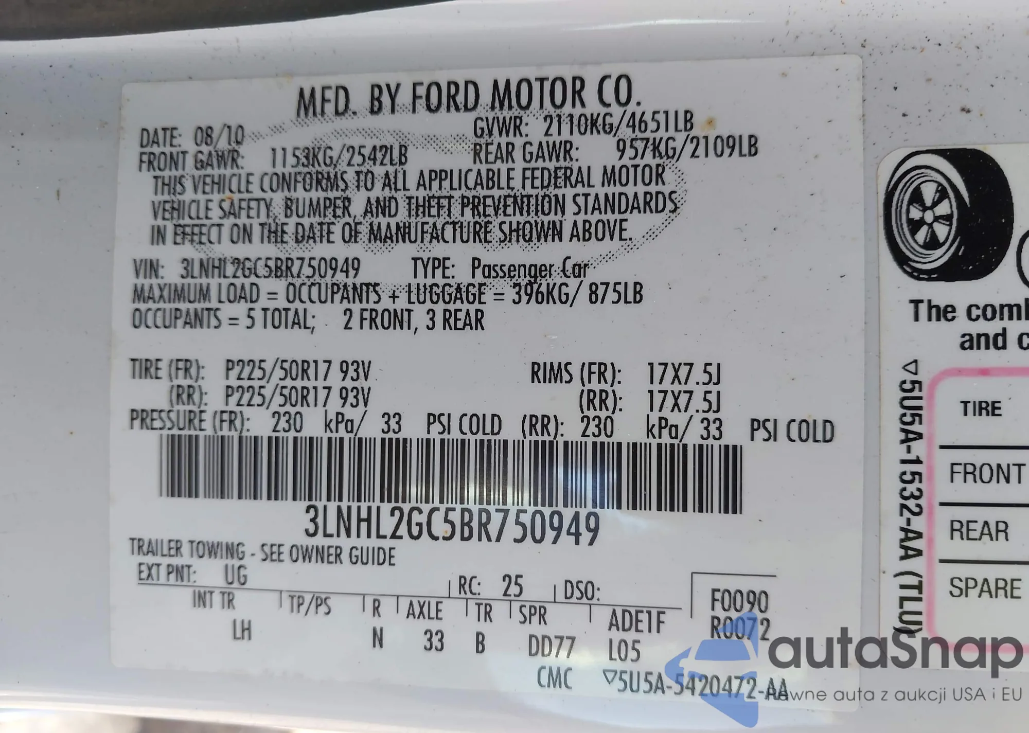 VIN: 3LNHL2GC5BR750949