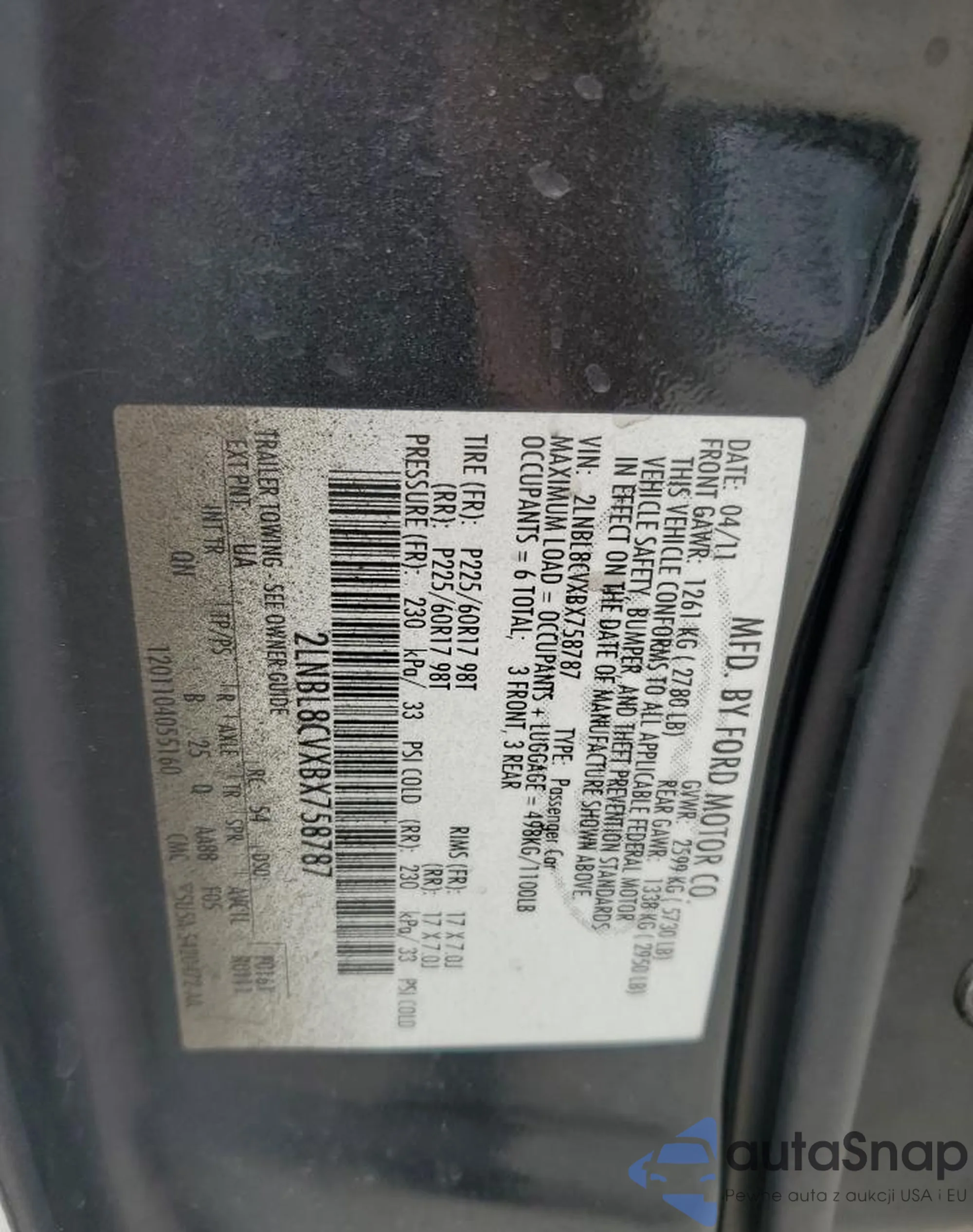 VIN: 2LNBL8CVXBX758787