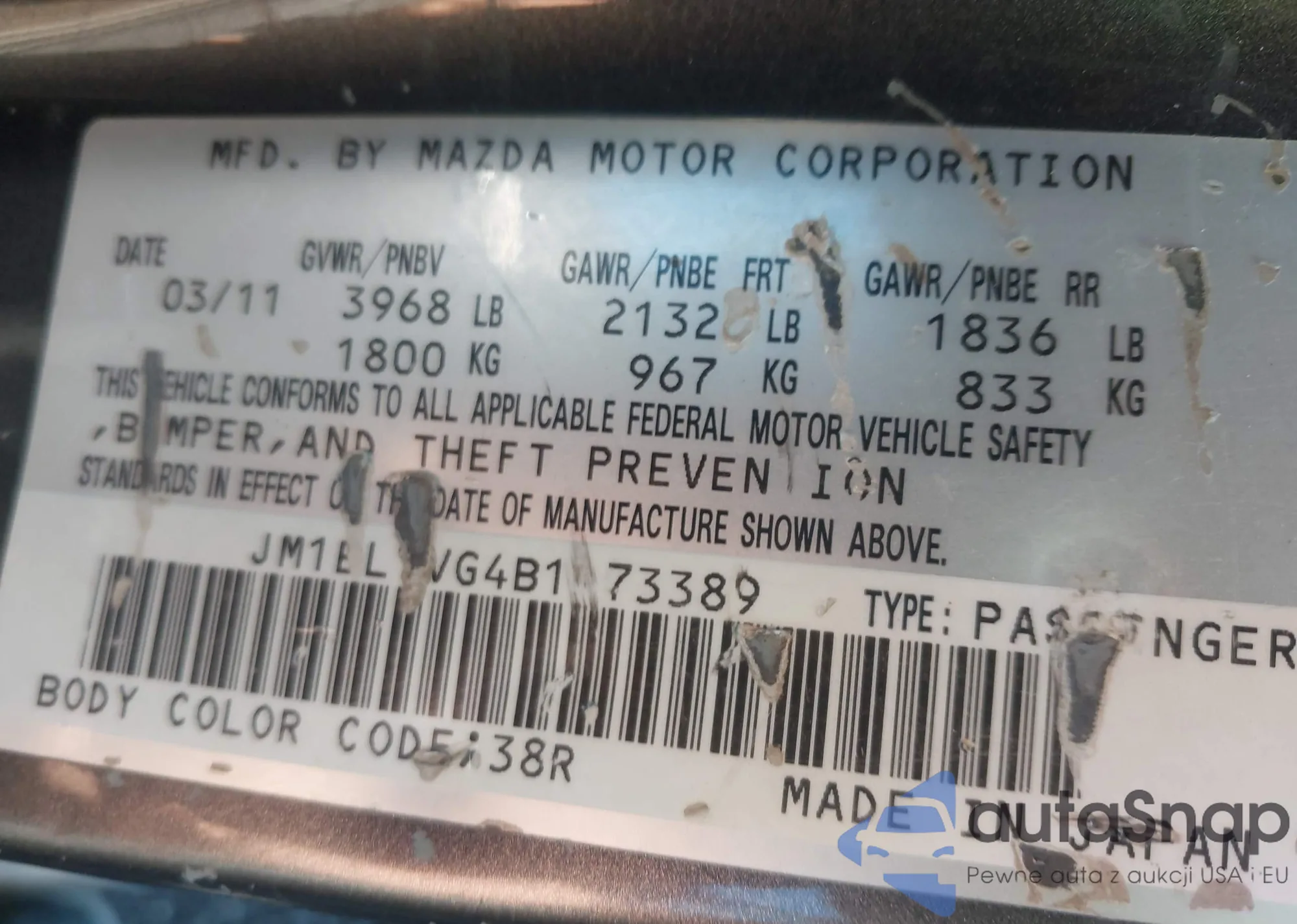 VIN: JM1BL1VG4B1473389