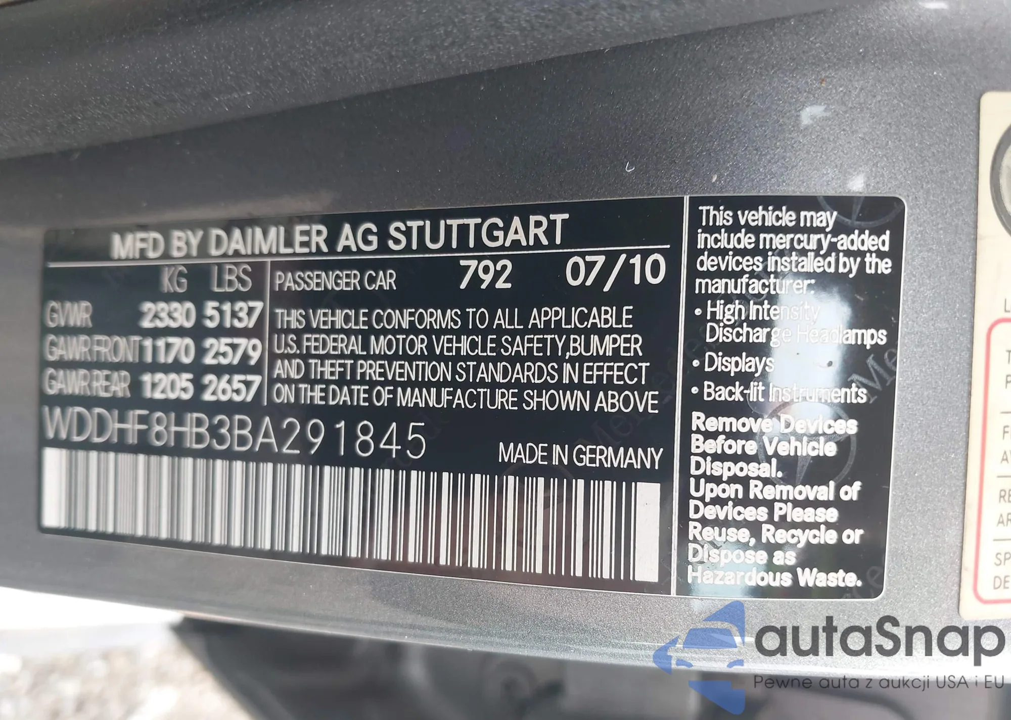 VIN: WDDHF8HB3BA291845