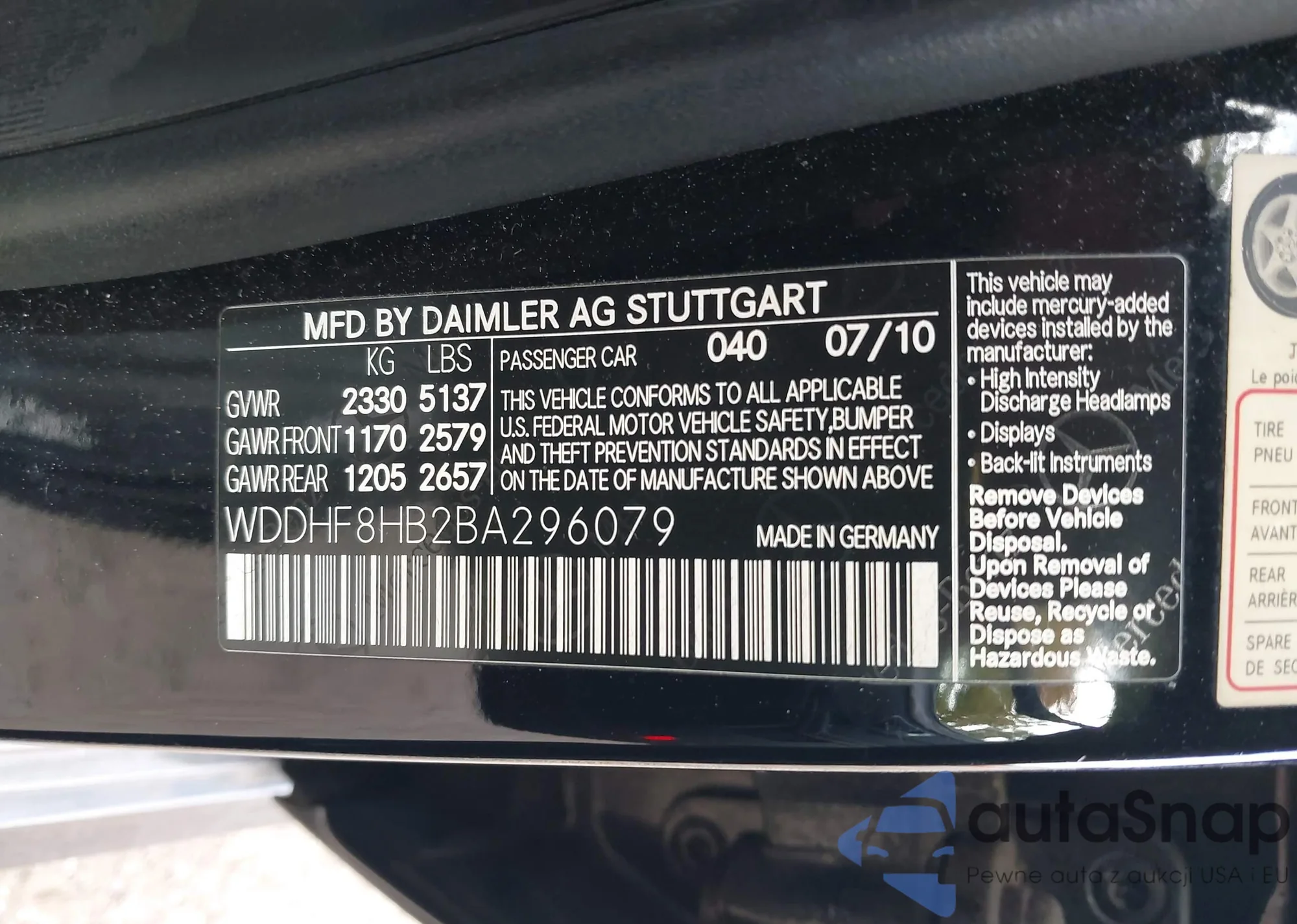 VIN: WDDHF8HB2BA296079