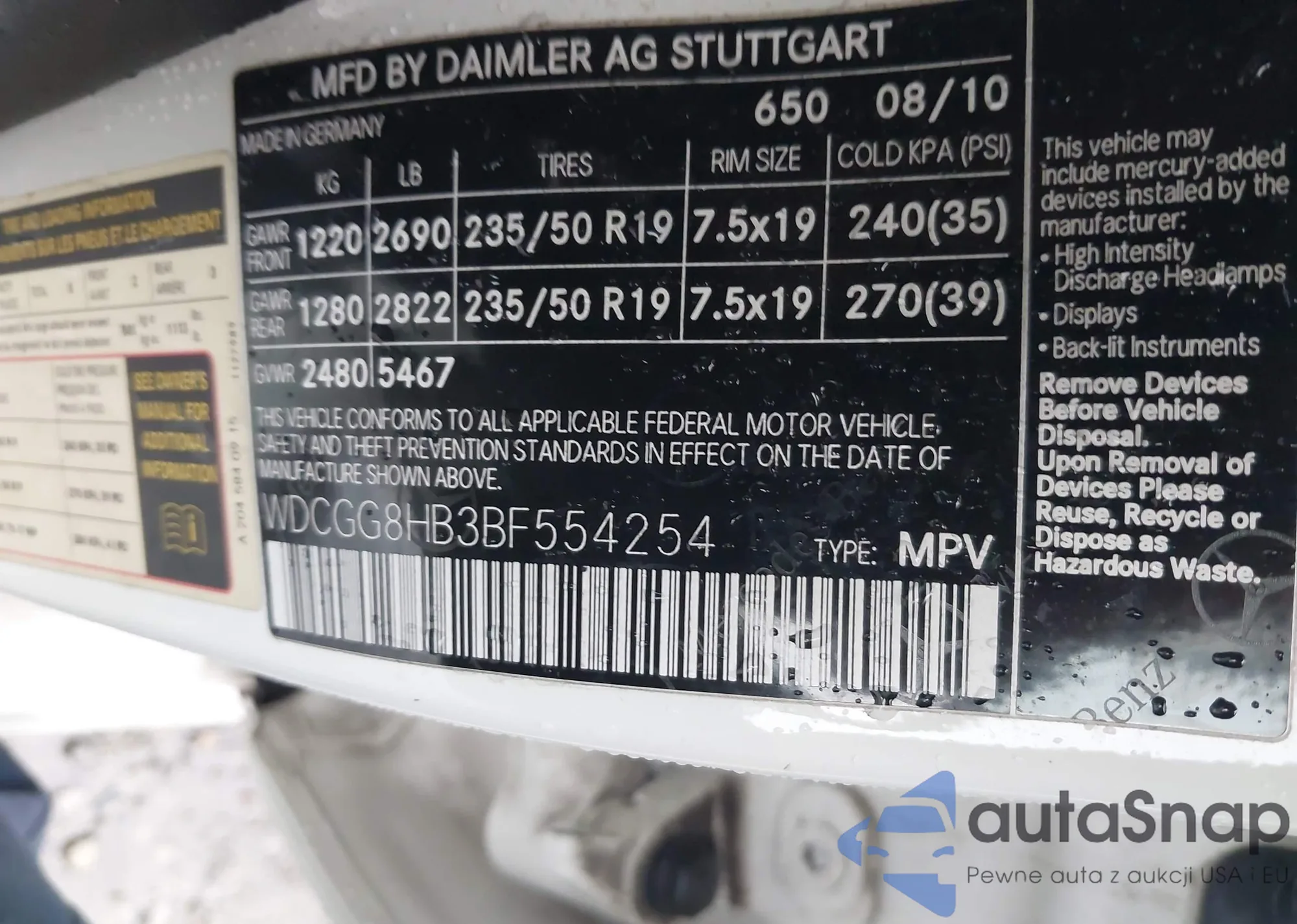 VIN: WDCGG8HB3BF554254