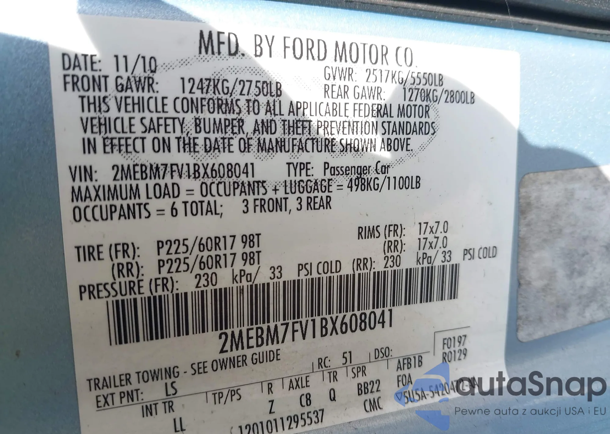 Автомобиль Mercury Grand Marquis 2011 (VIN 2MEBM7FV1BX608041) ранее не участвовал в торгах. Документы чистые, пробег соответствует или ниже среднего по рынку. Продаётся страховой компанией — рекомендуем покупку. Доставка в порт займет около 6–8 недель.