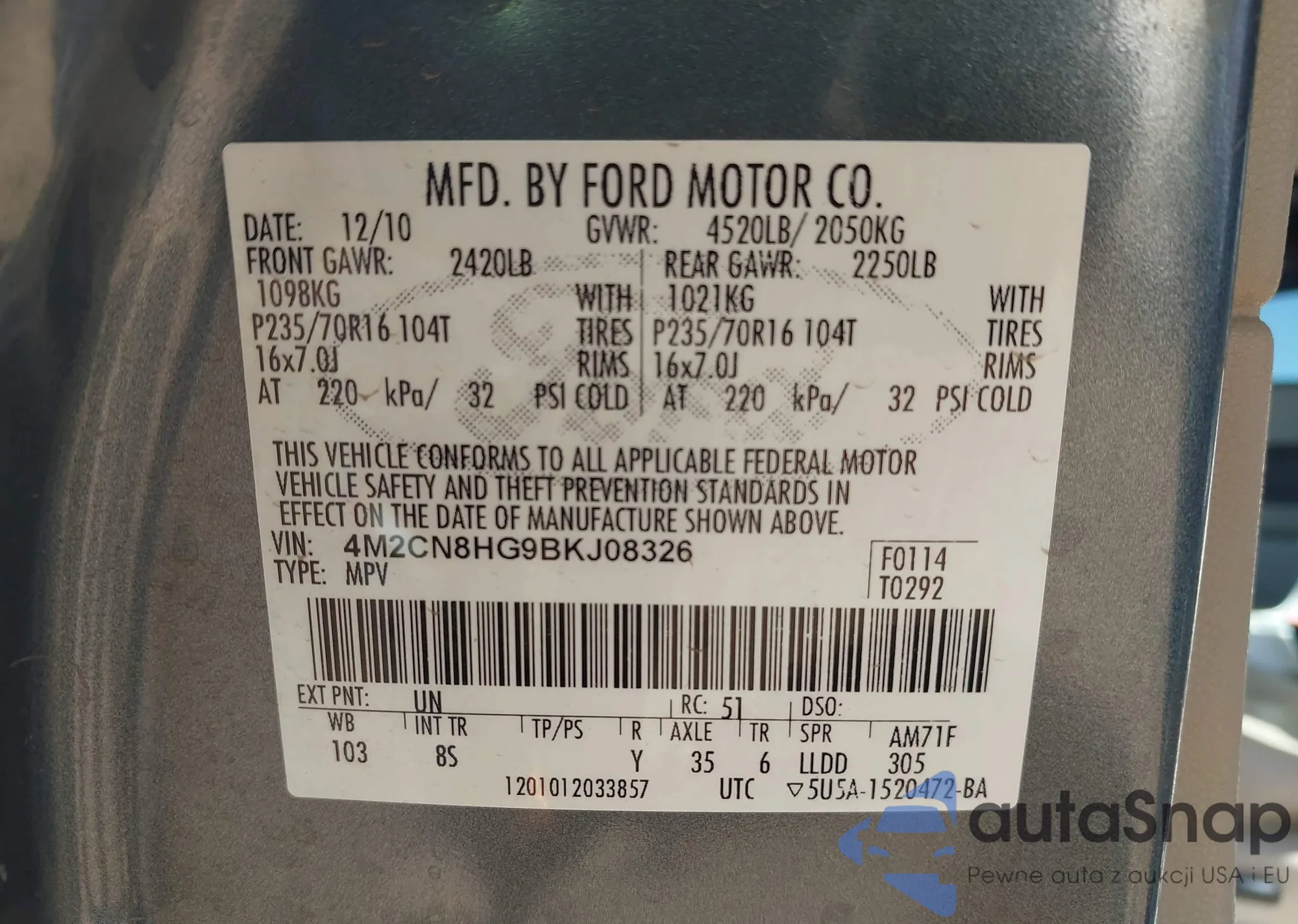 • VIN: 4M2CN8HG9BKJ08326
