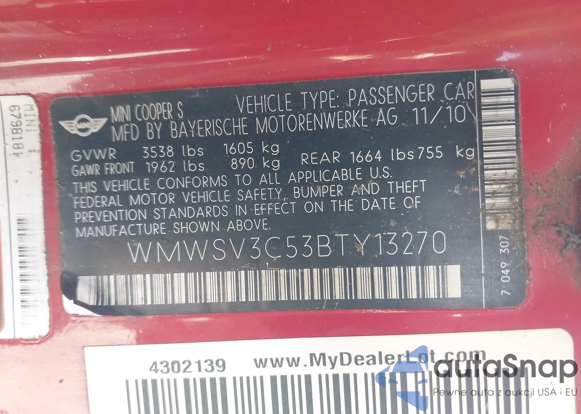 VIN: WMWSV3C53BTY13270