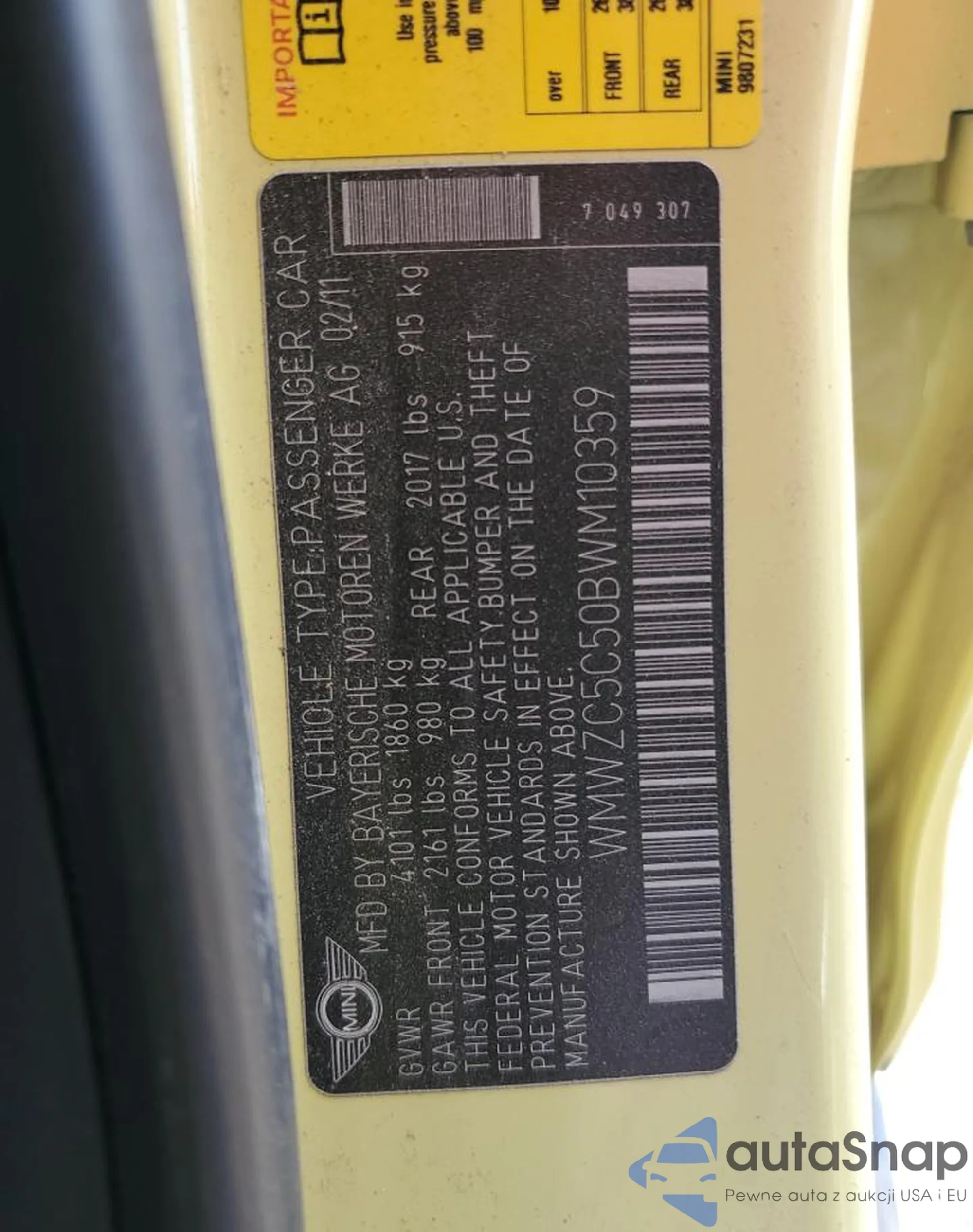VIN: WMWZC5C50BWM10359