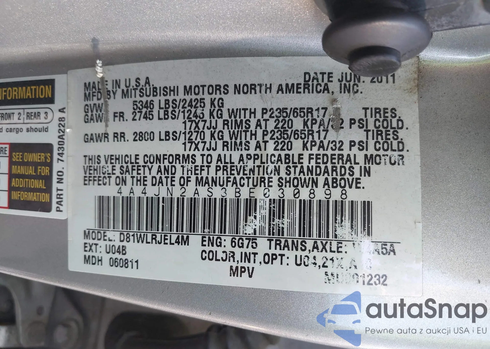 VIN: 4A4JN2AS3BE030898