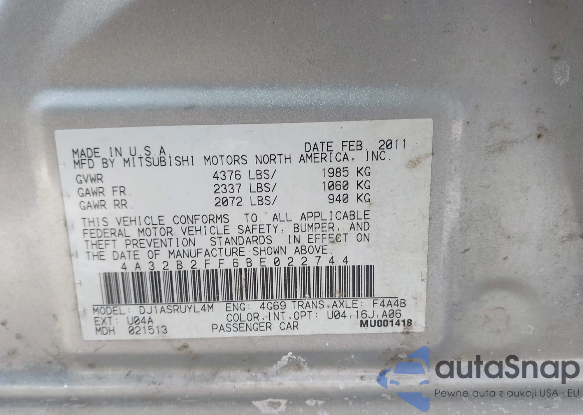 • Марка: 2011 Mitsubishi Galan...