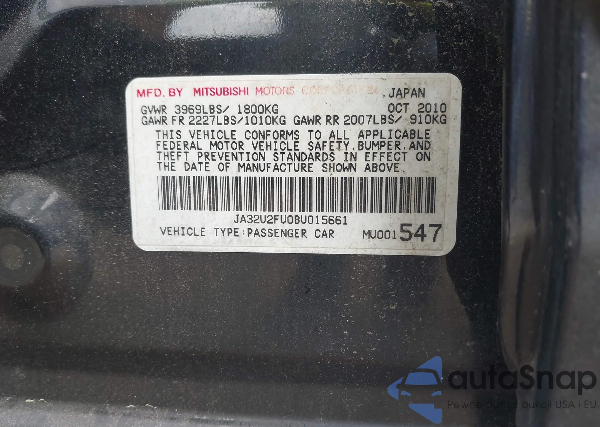 VIN: JA32U2FU0BU015661