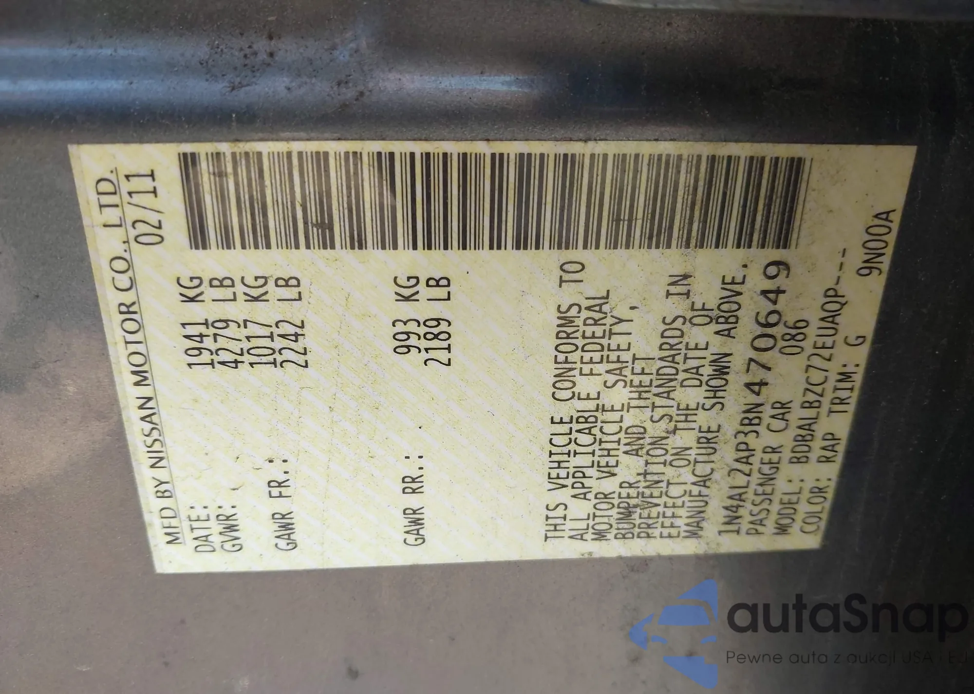 VIN: 1N4AL2AP3BN470649