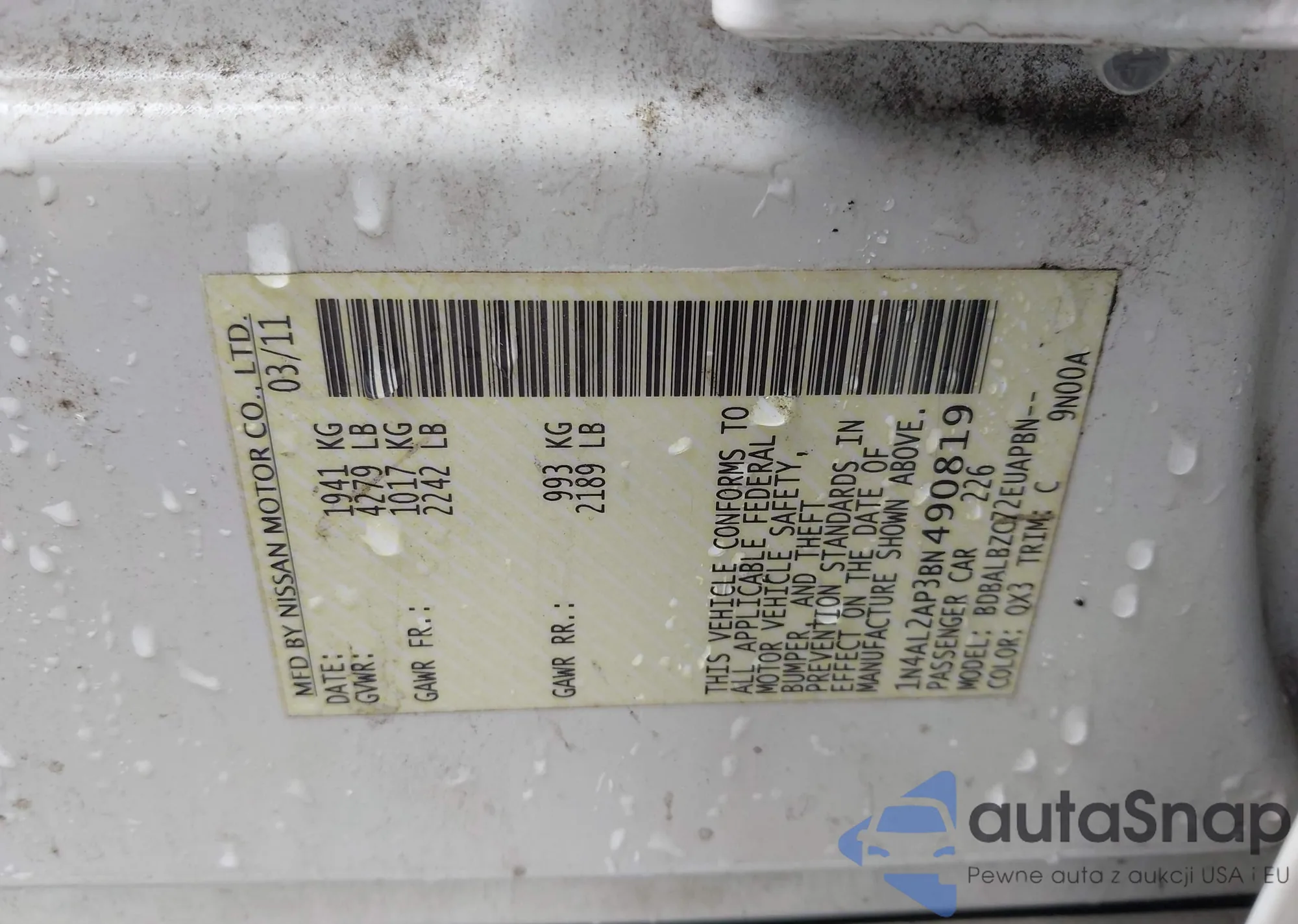 • VIN: 1N4AL2AP3BN490819