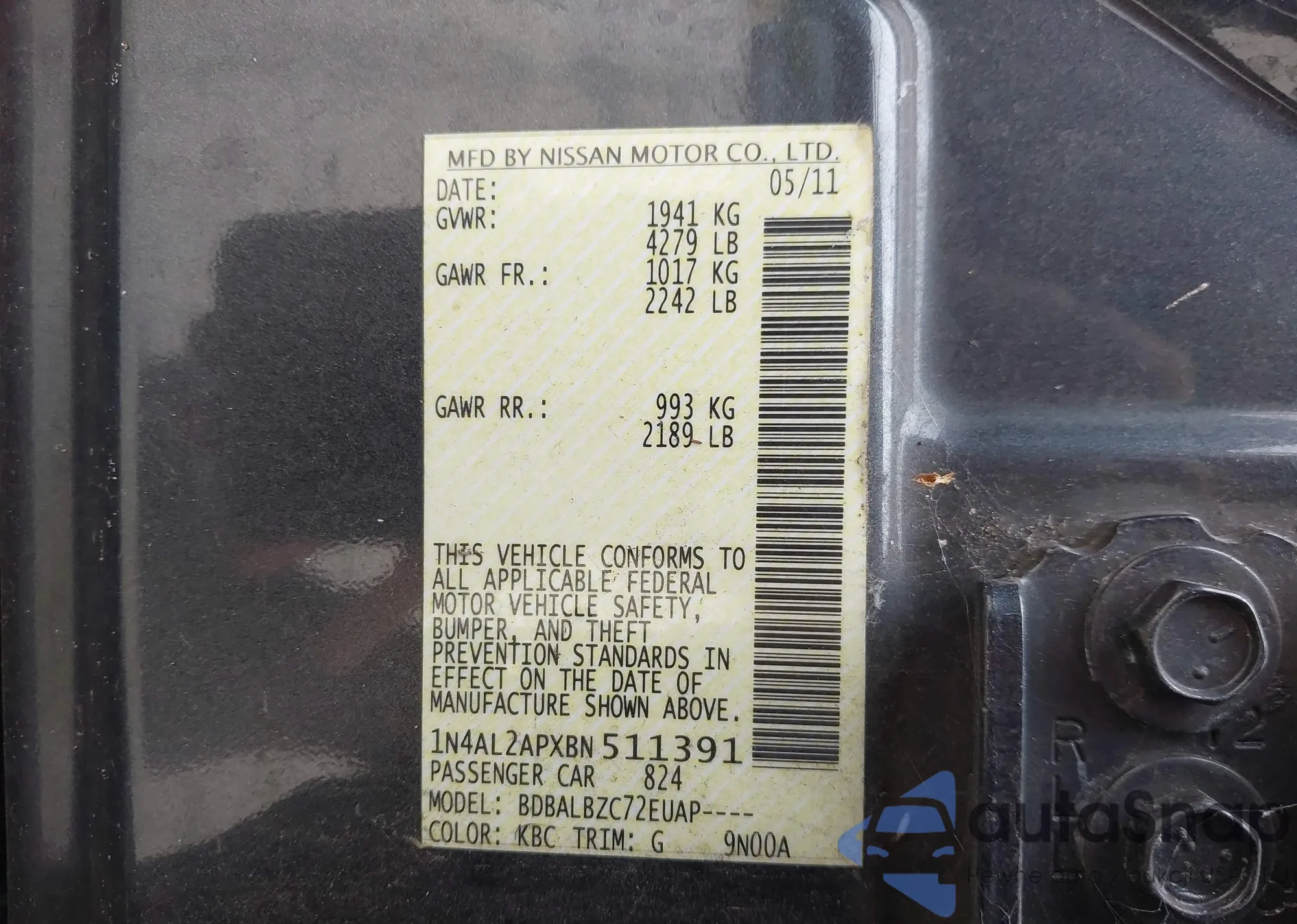 VIN: 1N4AL2APXBN511391