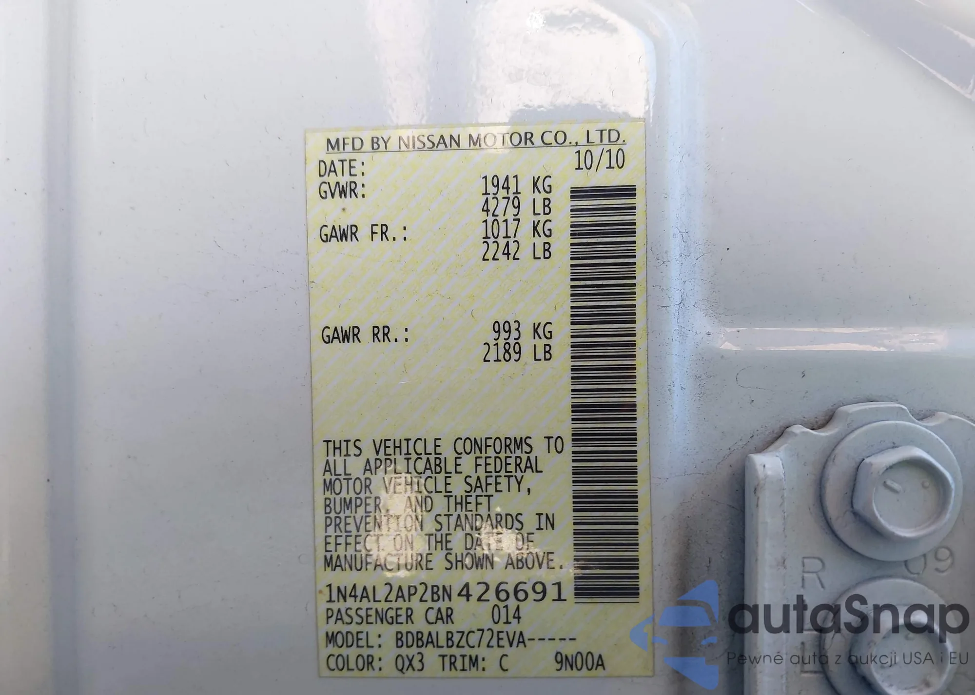 • VIN: 1N4AL2AP2BN426691