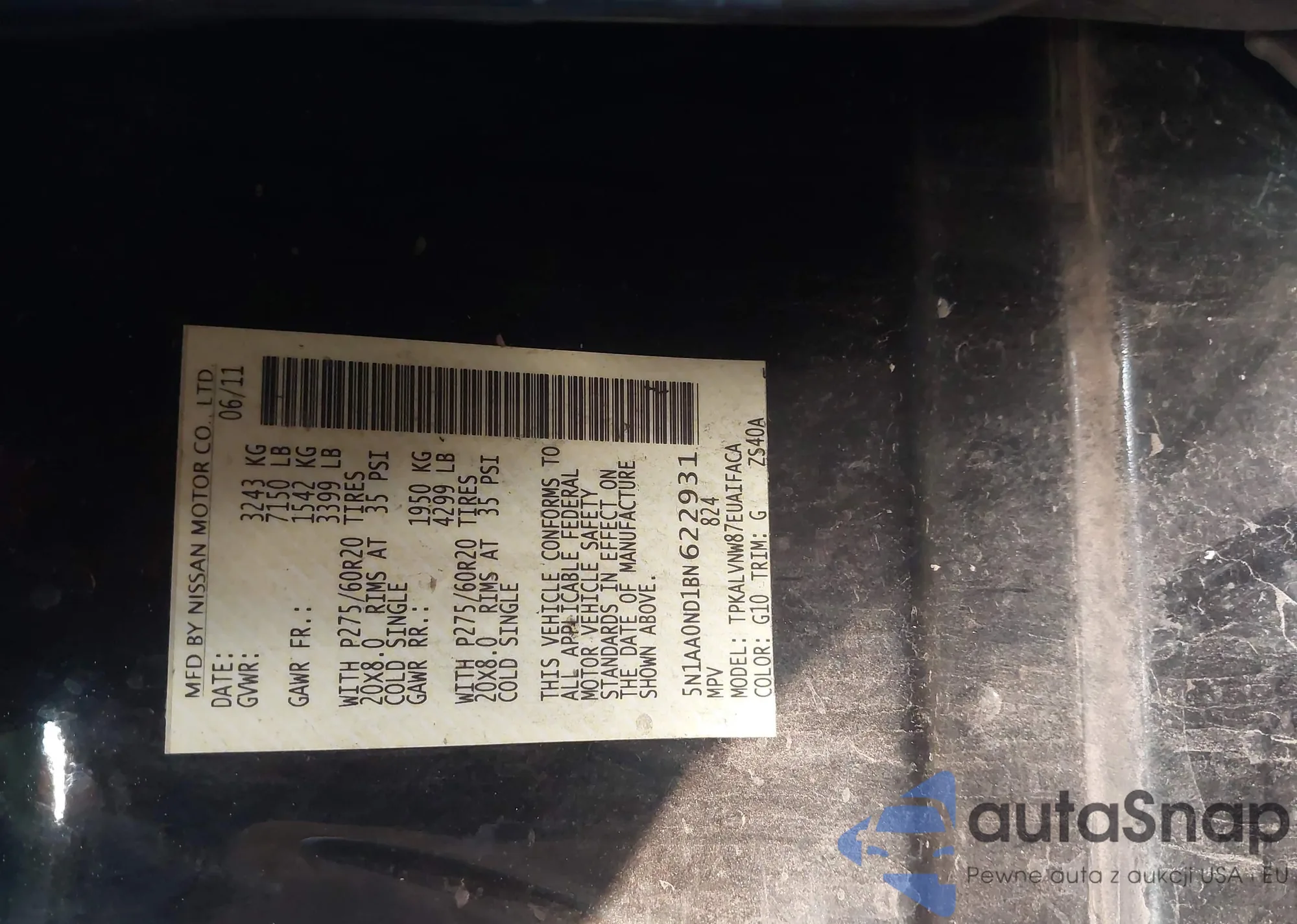 Nissan Armada 2011 – История автомобиля (продан на IAAI)