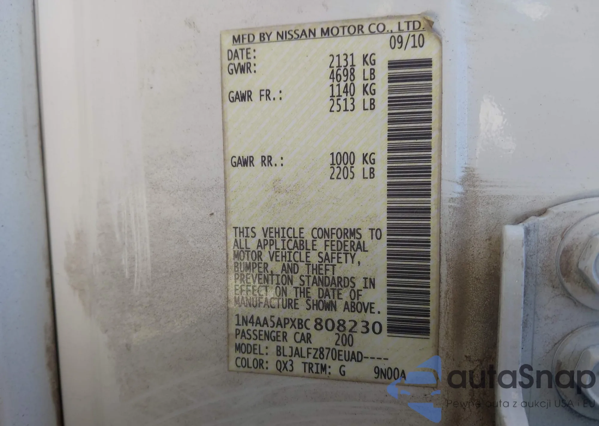 • VIN: 1N4AA5APXBC808230