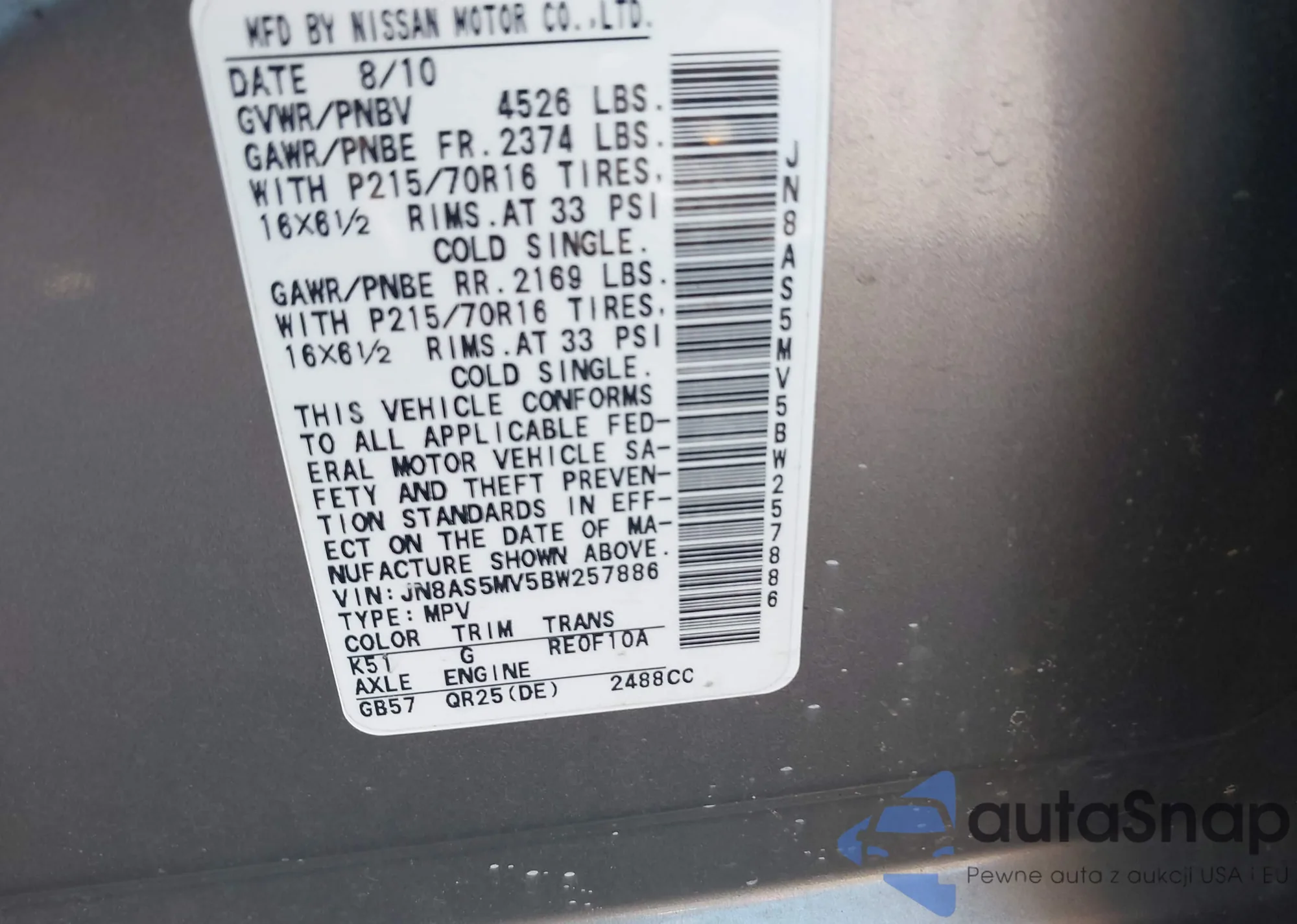 VIN: JN8AS5MV5BW257886