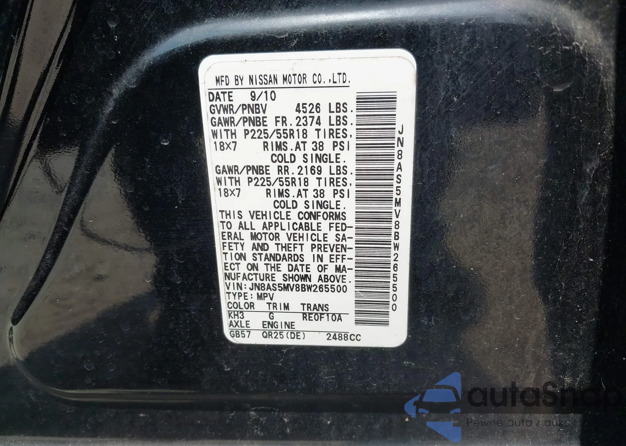 VIN: JN8AS5MV8BW265500