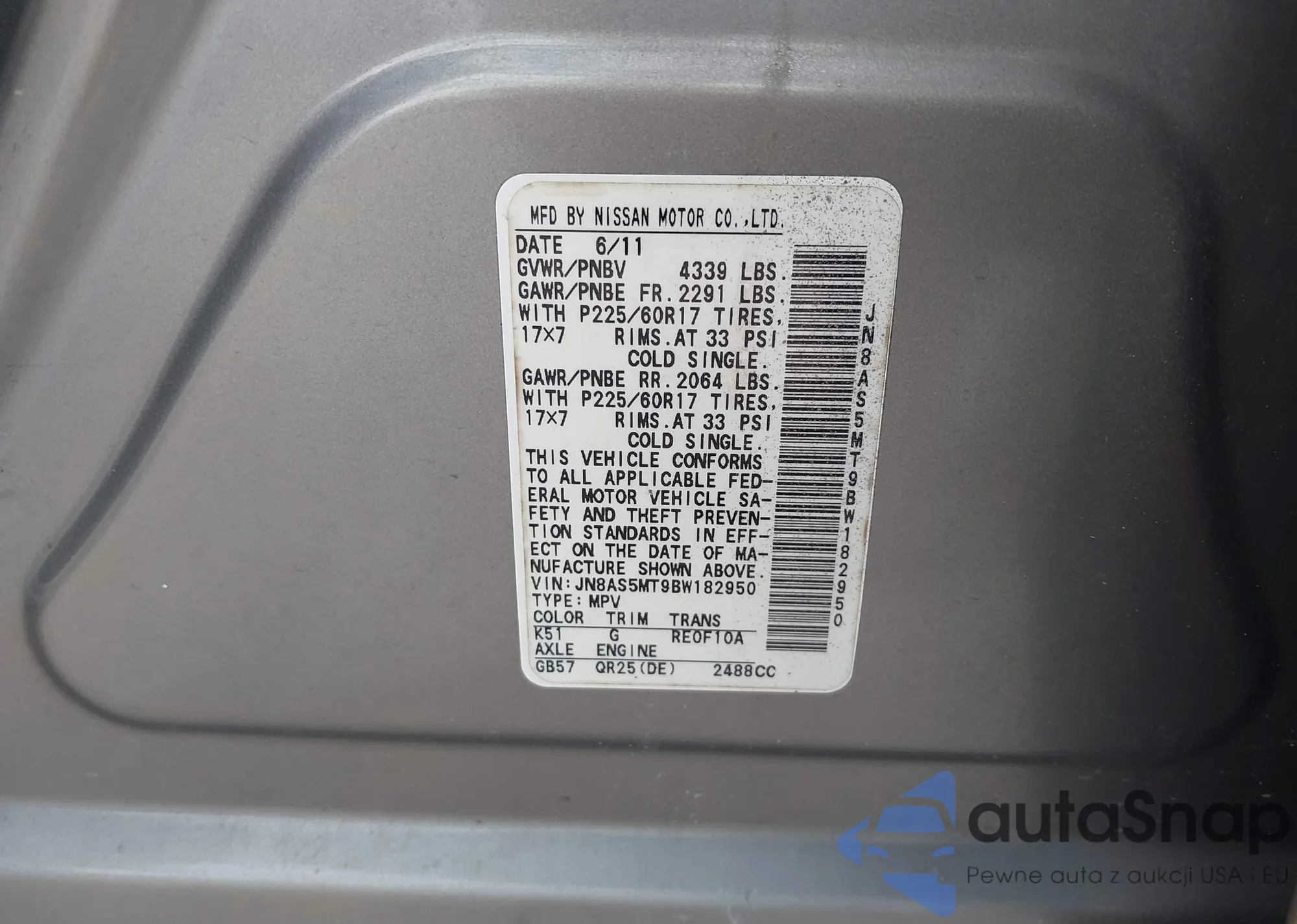 VIN: JN8AS5MT9BW182950