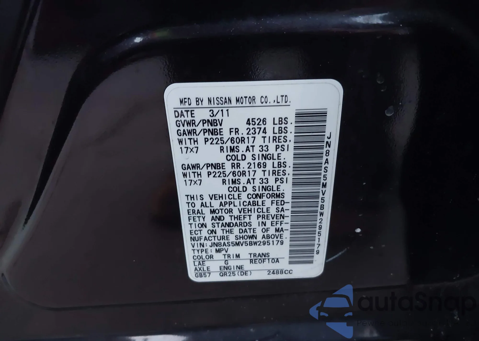 VIN: JN8AS5MV5BW295179