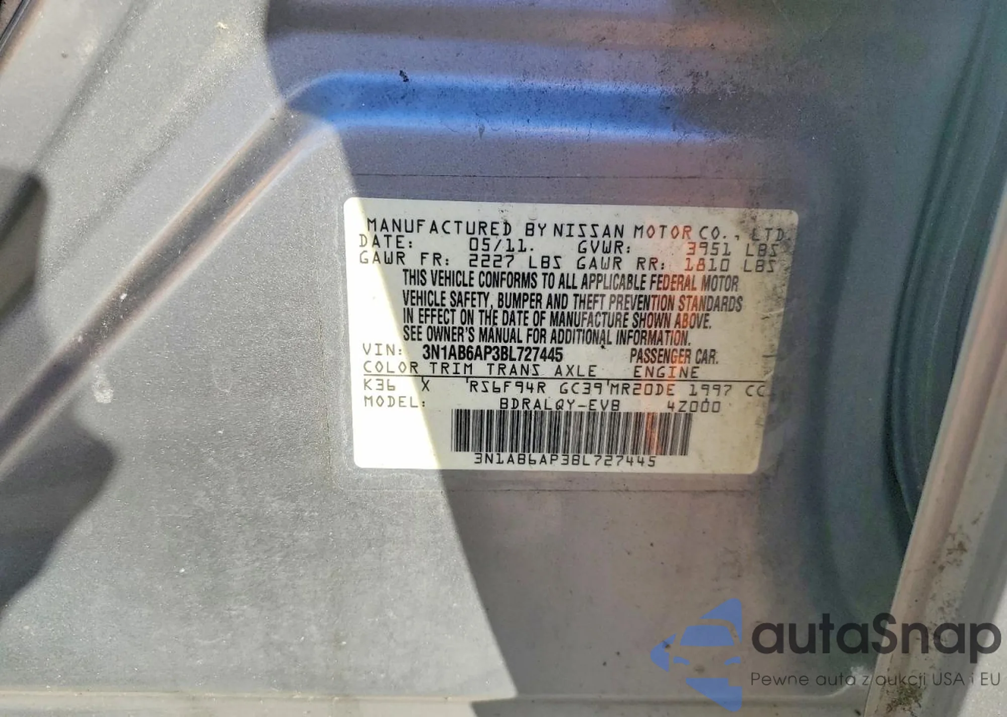• VIN: 3N1AB6AP3BL727445