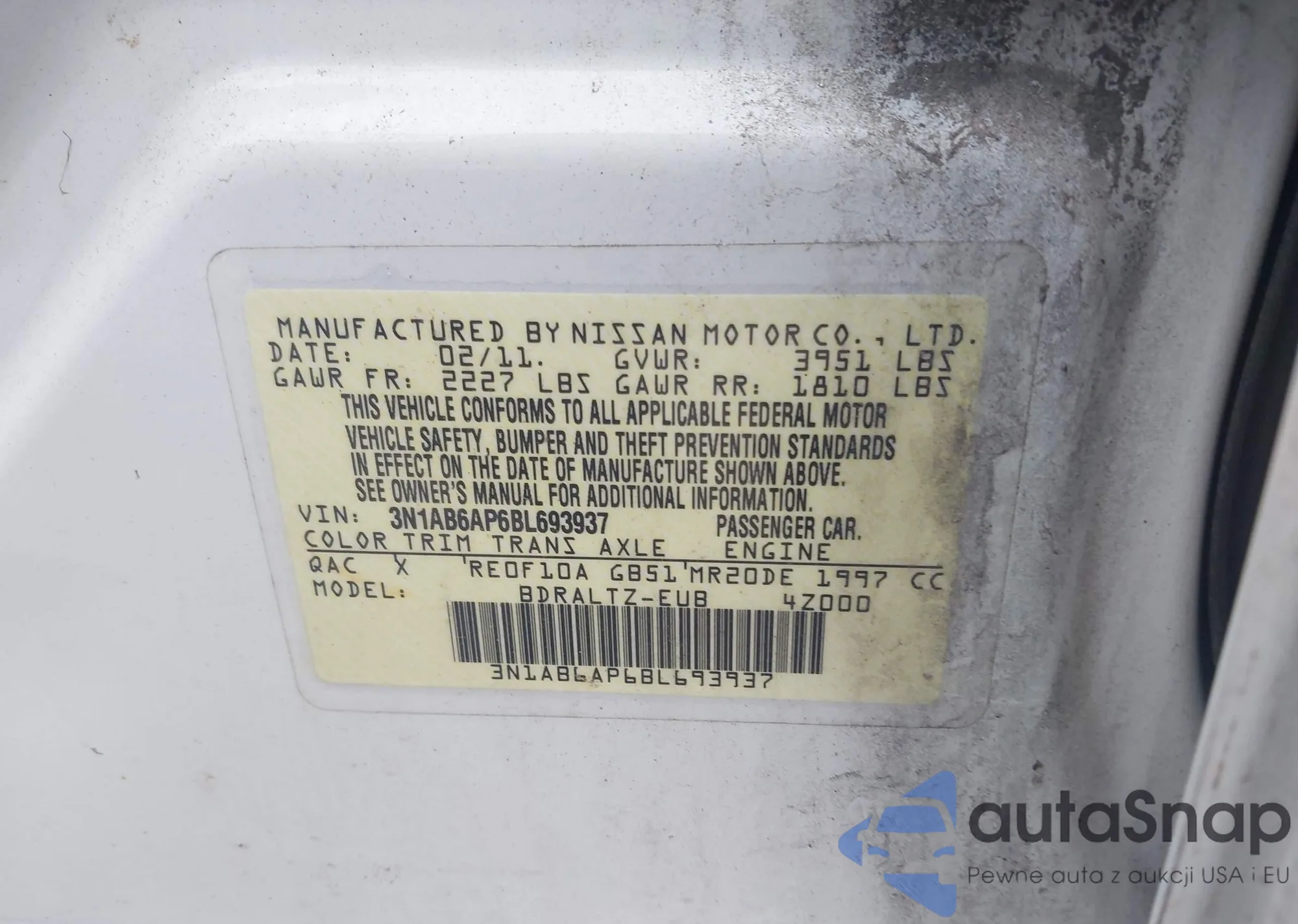VIN: 3N1AB6AP6BL693937