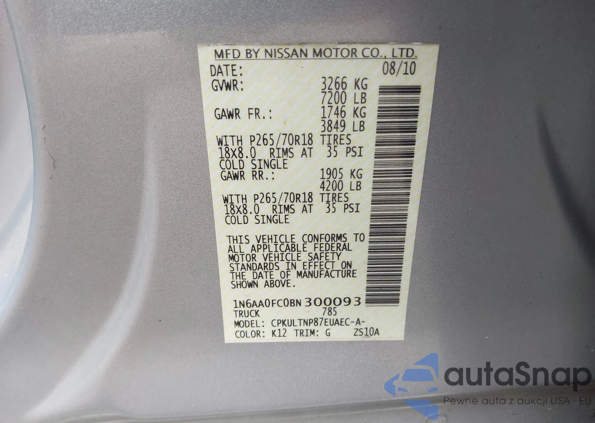 Автомобиль Nissan Titan 2011 (VIN 1N6AA0FC0BN300093) продаётся непроверенным продавцом. Рекомендуем проверить отчет Carfax и подтвердить возможность регистрации перед покупкой.